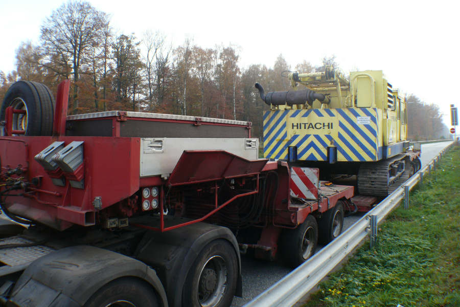 Transport eines Hitachi Seilbaggers