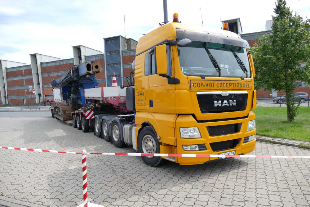 MAN 41.540 TGX XLX Transport eines ABI Mobilram TM 20/25 Rammgerätes