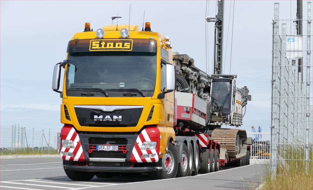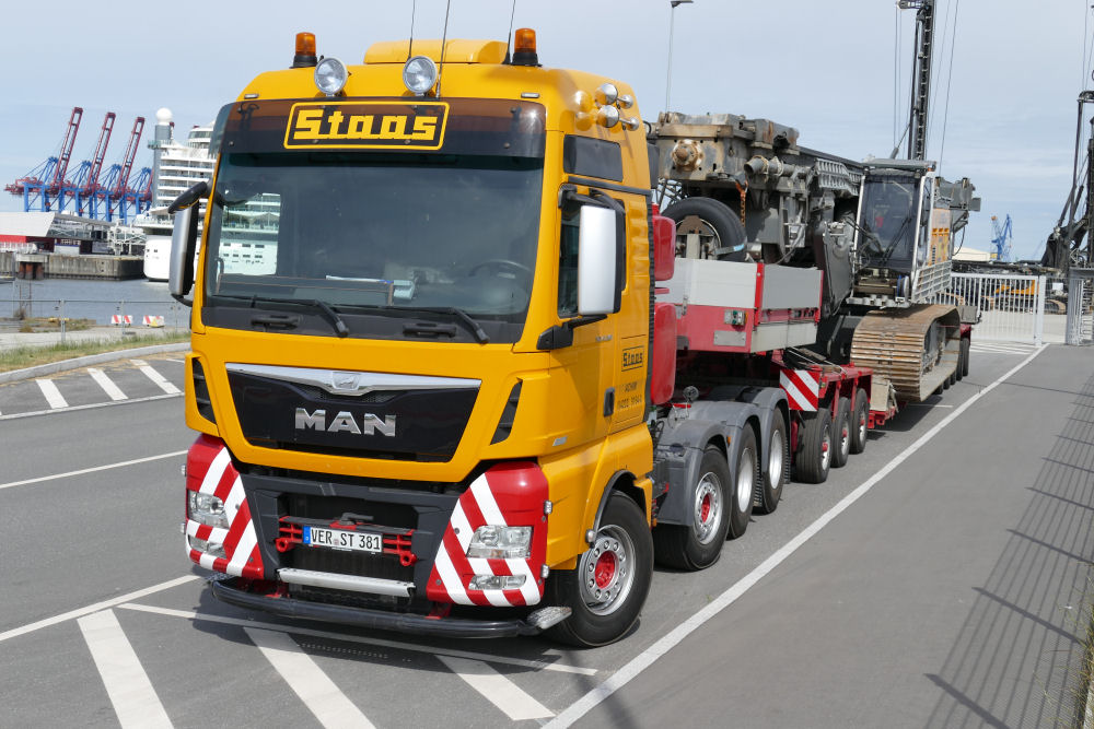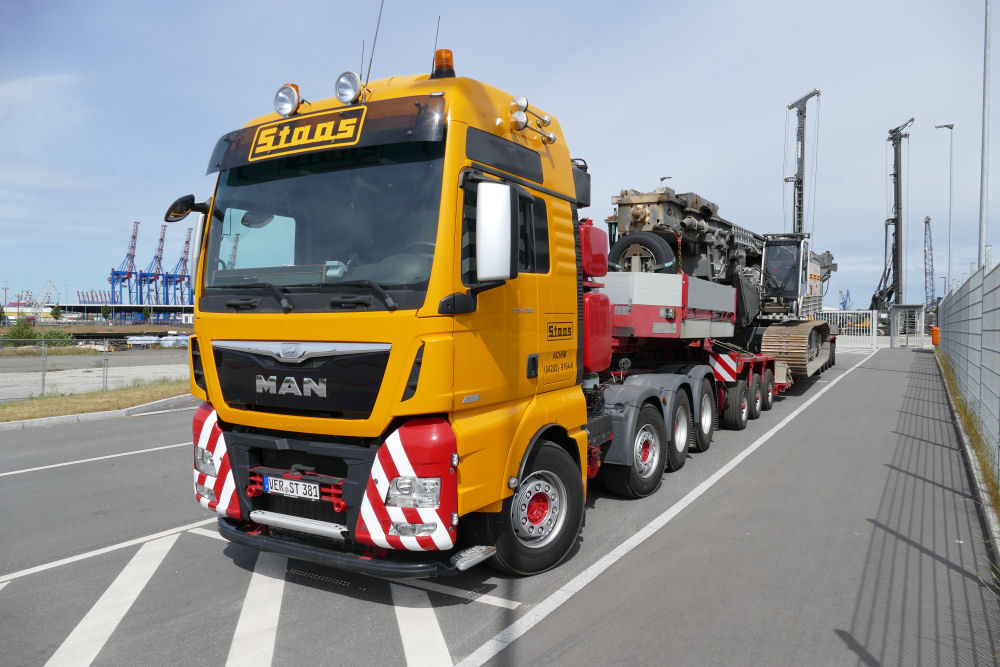 Im Mai 2020 entdeckte ich diesen Transport von Staas vor der Liebherr Niederlassung im Ellerholzhafen in Hamburg.