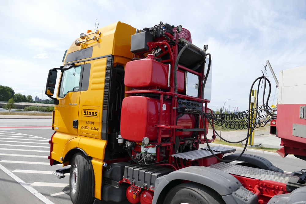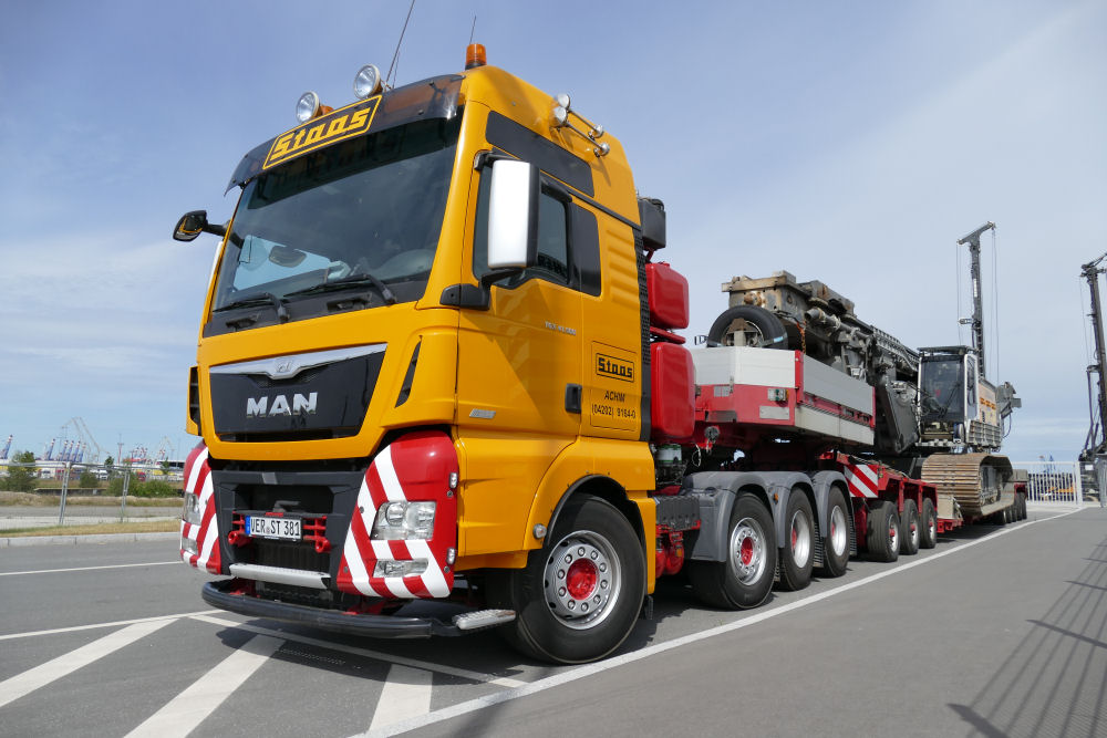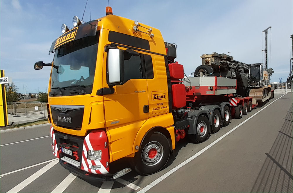 Die Schwerlastkombination bestand aus MAN 41.560 TGX mit Goldhofer THP XLE 3/5 Tieflader.