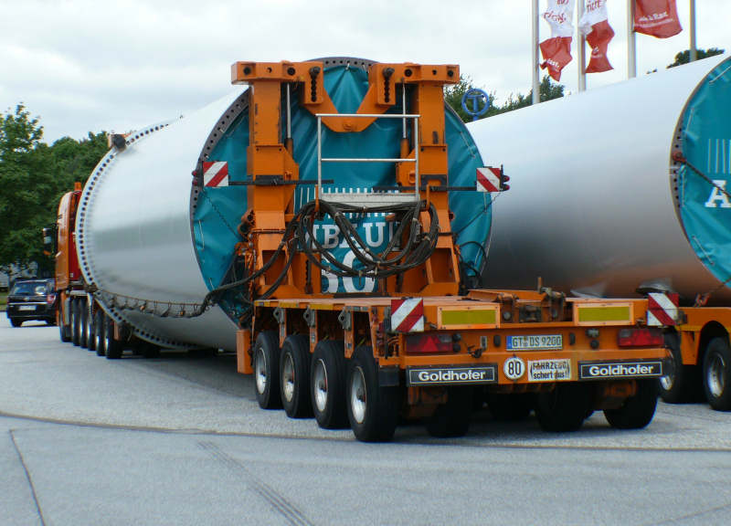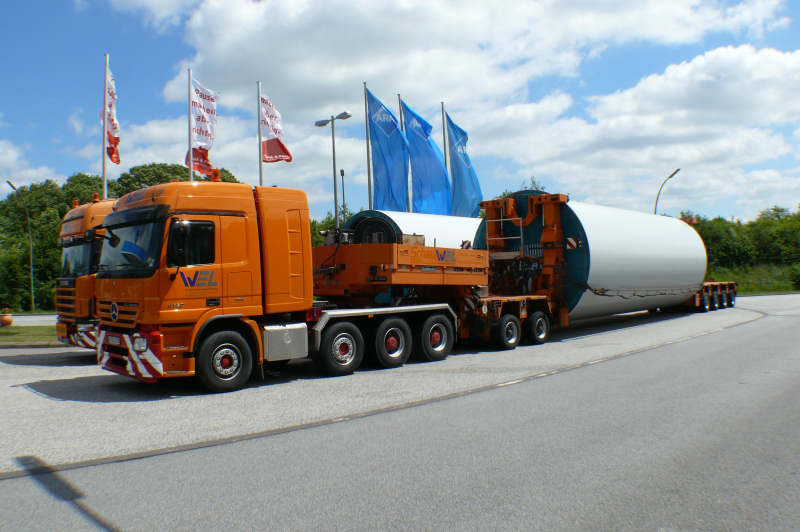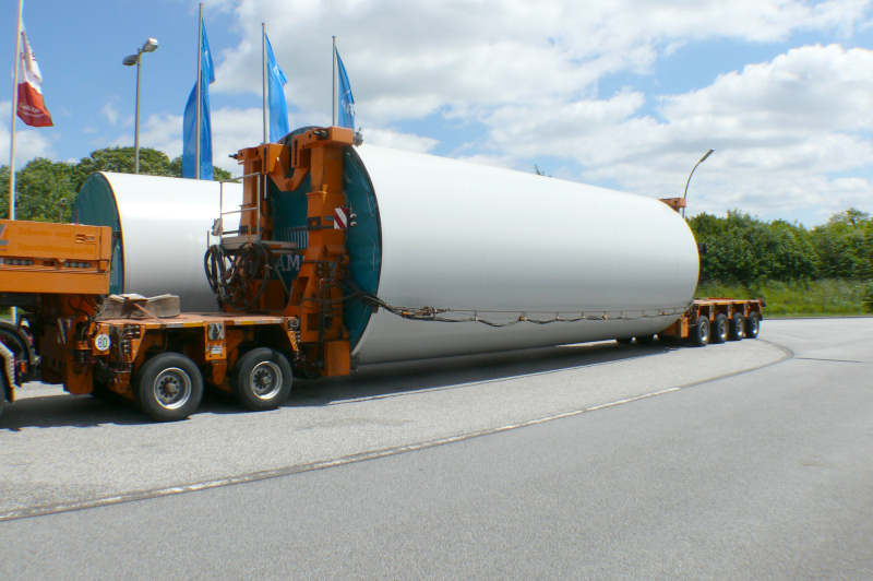 beladen mit Turmsegmenten für Repower MM 82 Windenergieanlagen ,auf