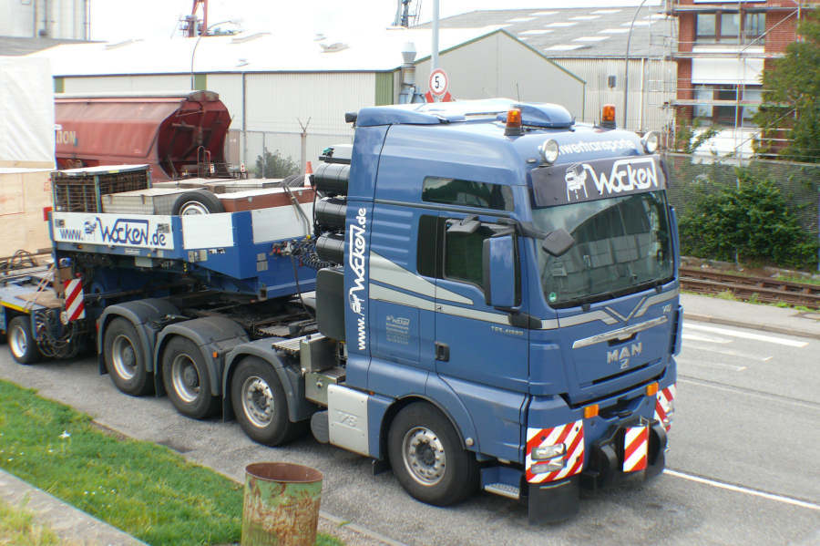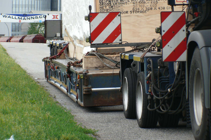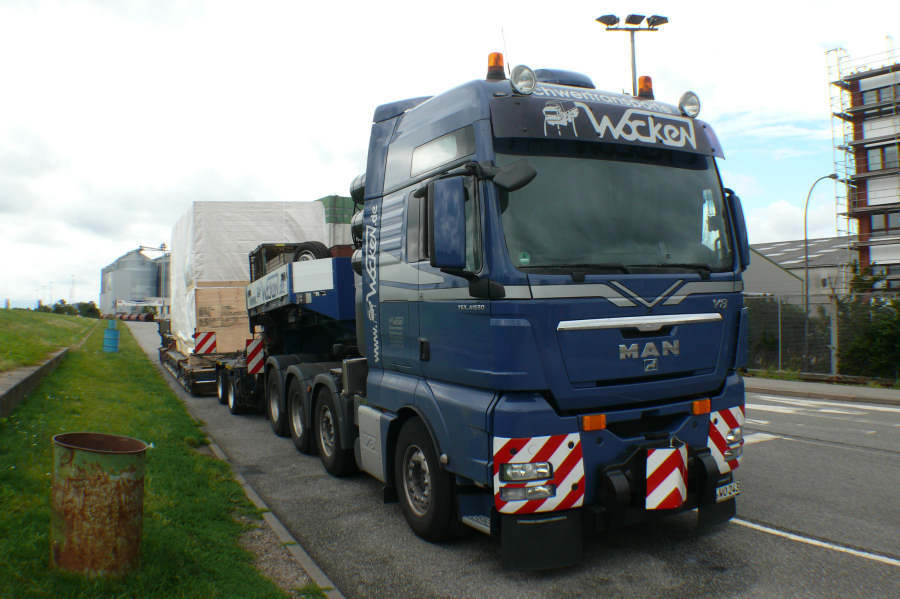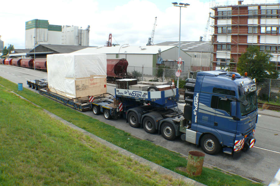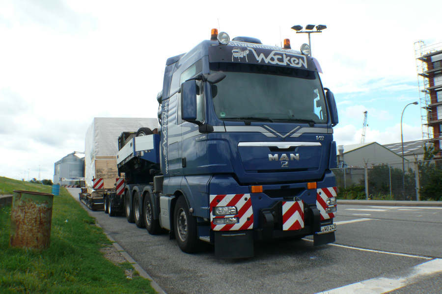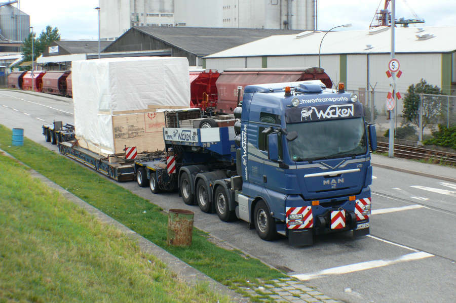 MAN 41.680 TGX, Transport einer Maschinenkiste für Übersee