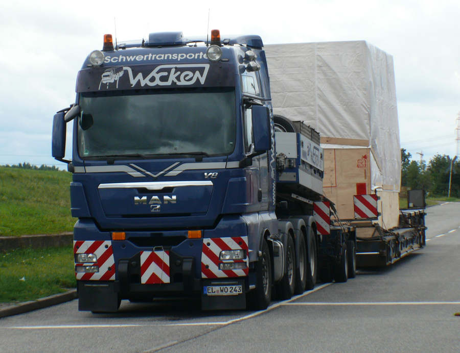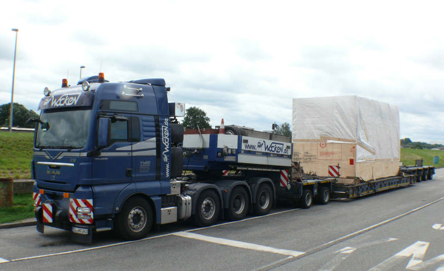 MAN 41.680 TGX, Transport einer Maschinenkiste für Übersee