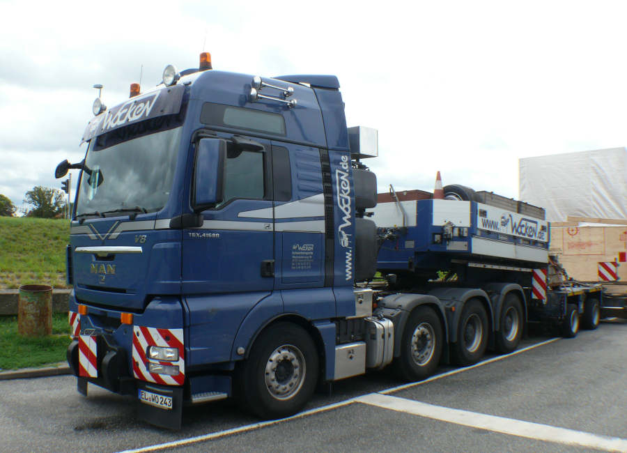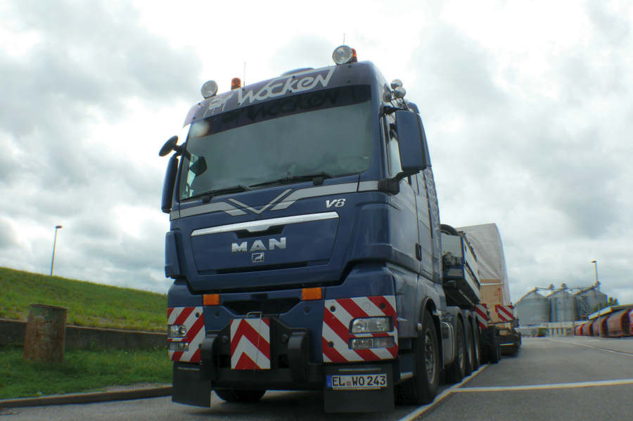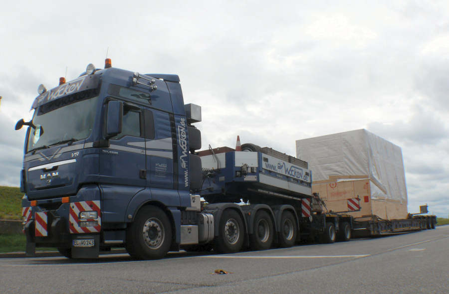Die Schwerlastkombination bestand aus MAN 41.680 TGX und Goldhofer THP Achslinien mit zwischengekuppeltem