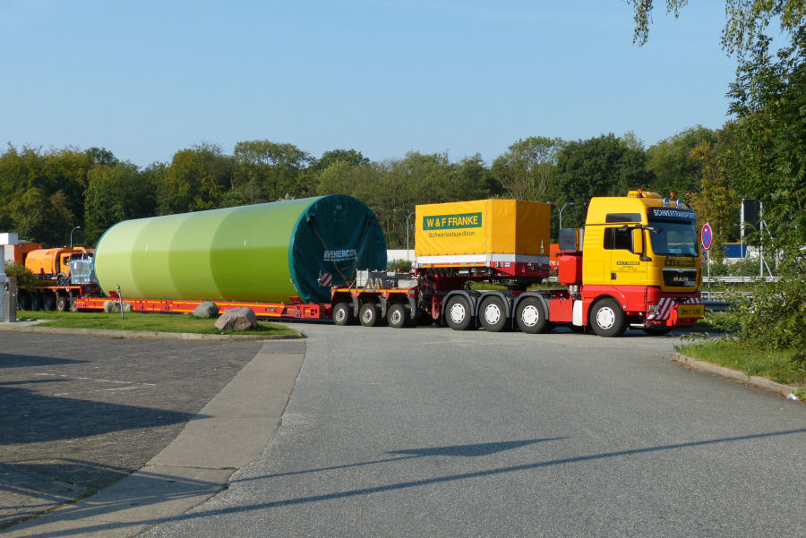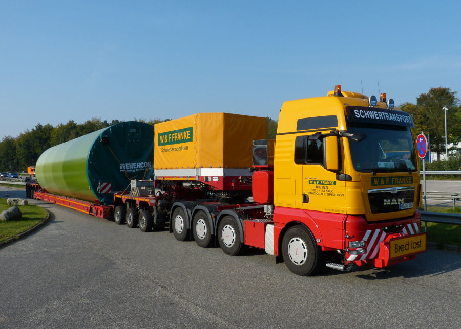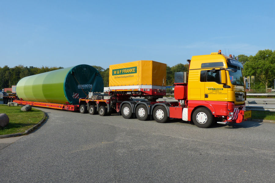 MAN 41.540 TGX HB WF 254 mit Goldhofer STZ-VP 8 (3+5) A Tieflader und Enercon WEA Bodensektion