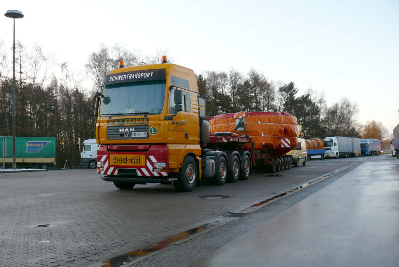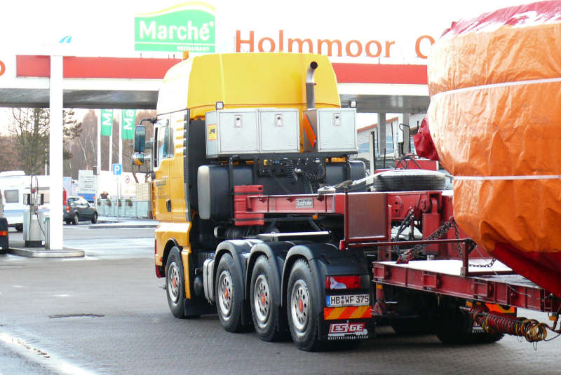 Diesen Transport knipste ich im März 2008 auf dem Rasthof Holmmoor Ost, früh morgens