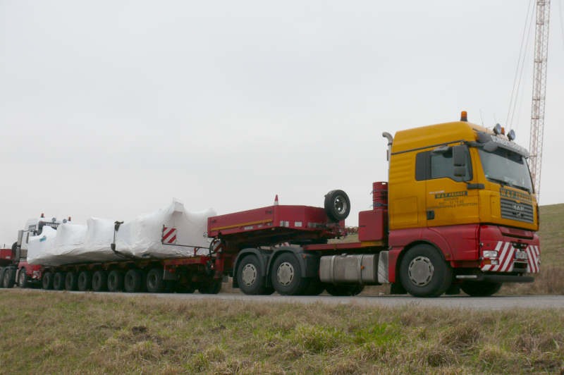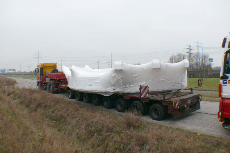 Die beiden Generatoren mußten, wegen ihrer Größe, geteilt gefahren werden, so daß insgesamt vier Transporte