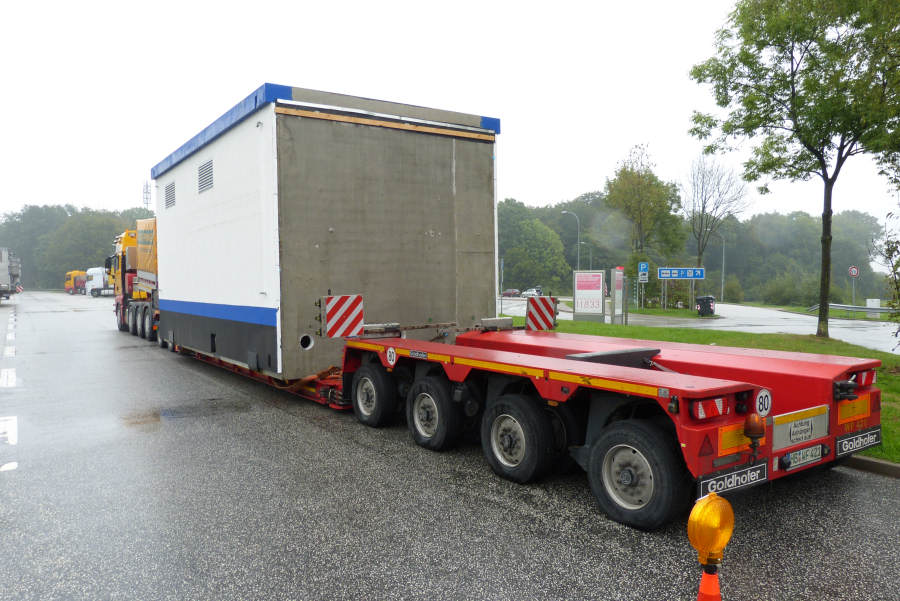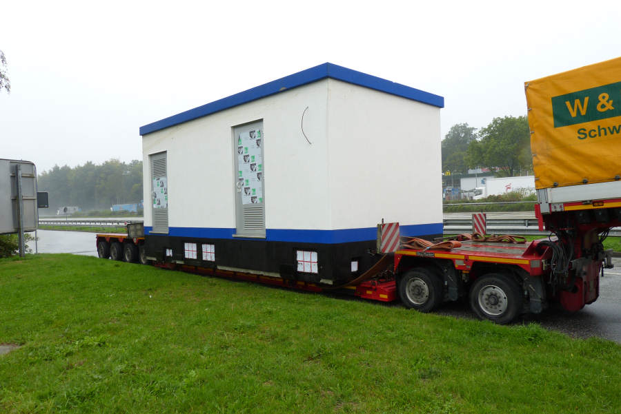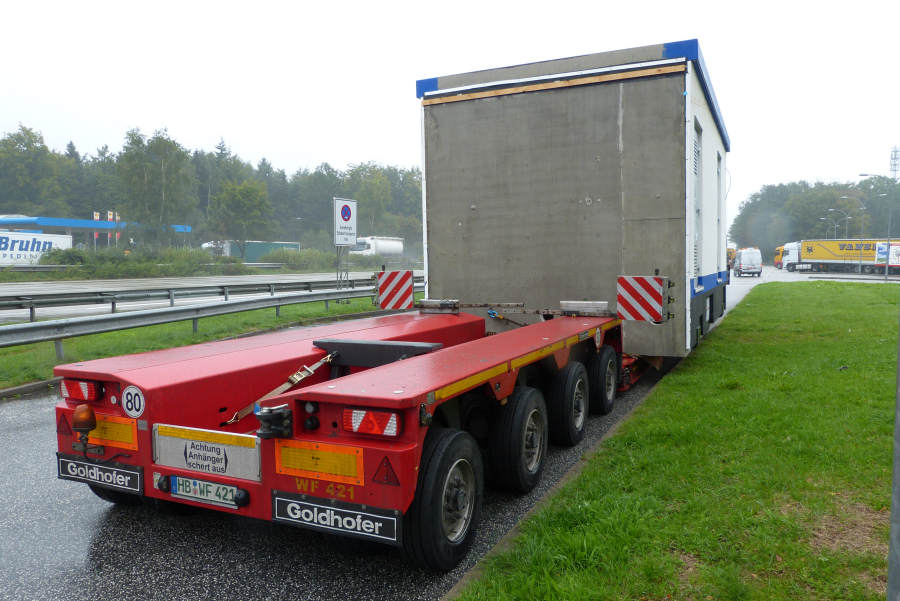 MAN 41.540 TGX mit Goldhofer 2/4 Tiefladern, Transport von Trafostationen
