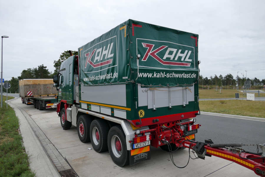 Für den Straßentransport des Trafos setzte Kahl Schwerlast