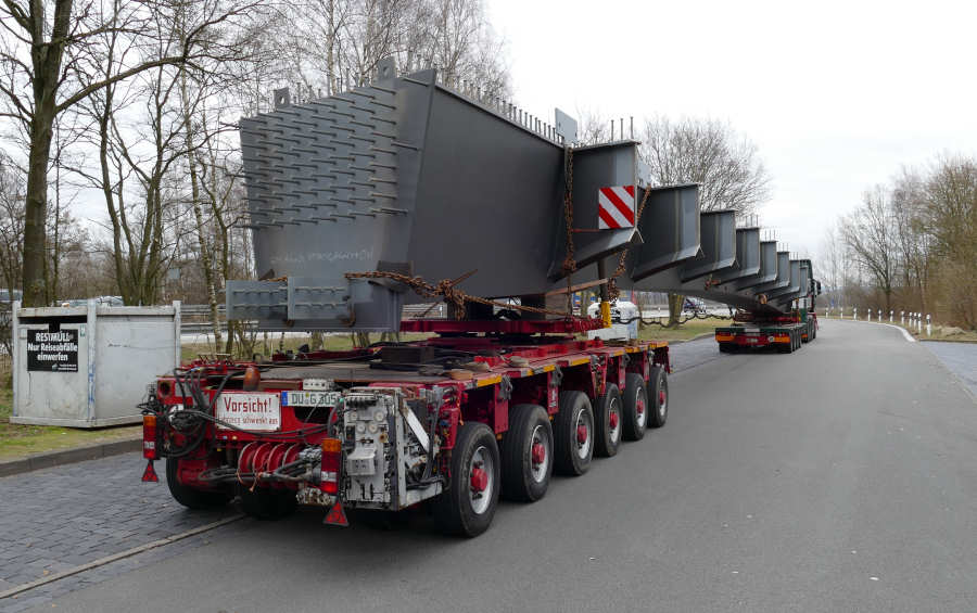 MAN 41.540 und MAN 41.680 mit 75 t Stahlbrückenbinder Transporten