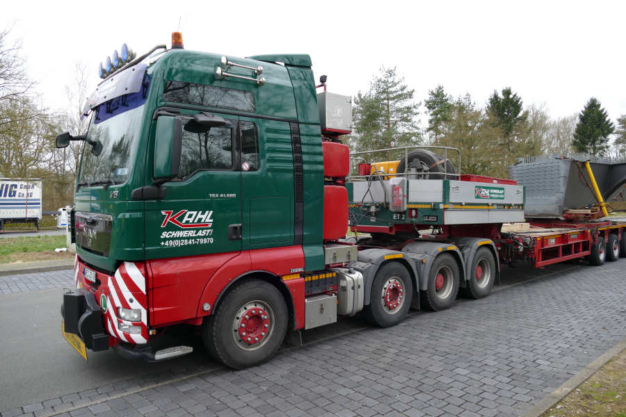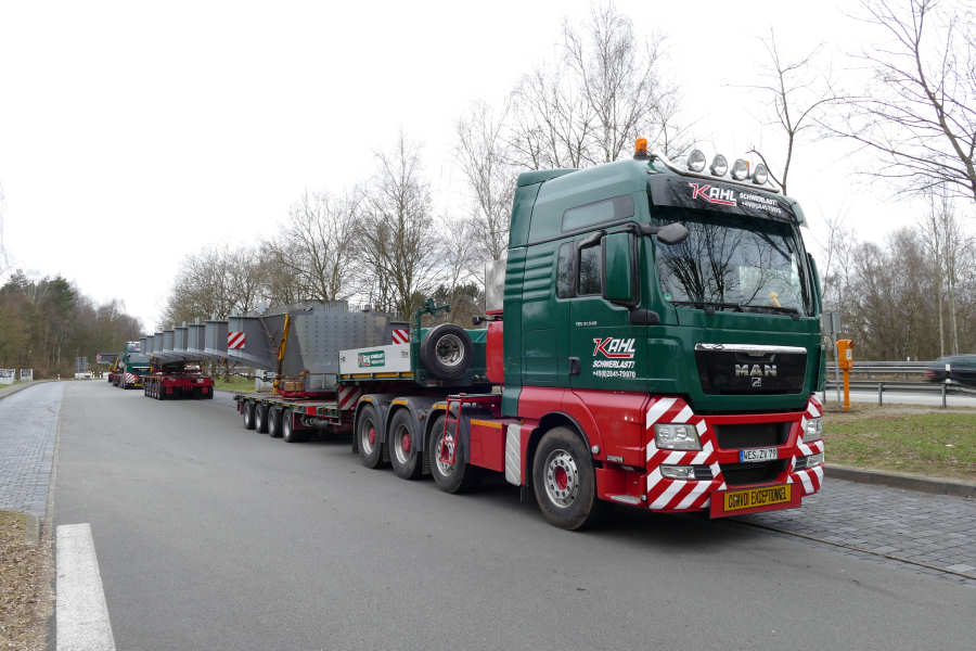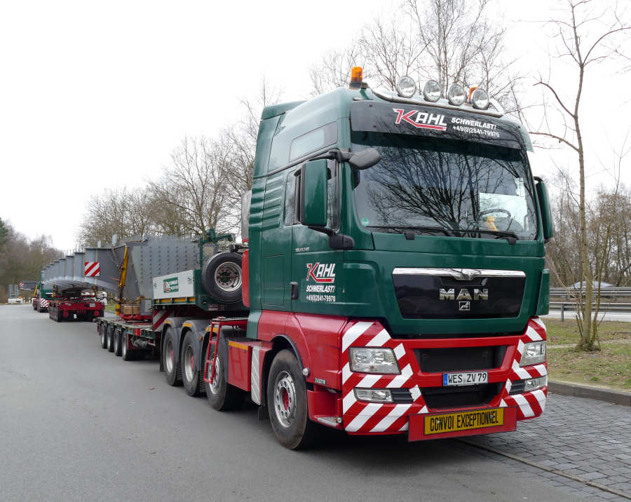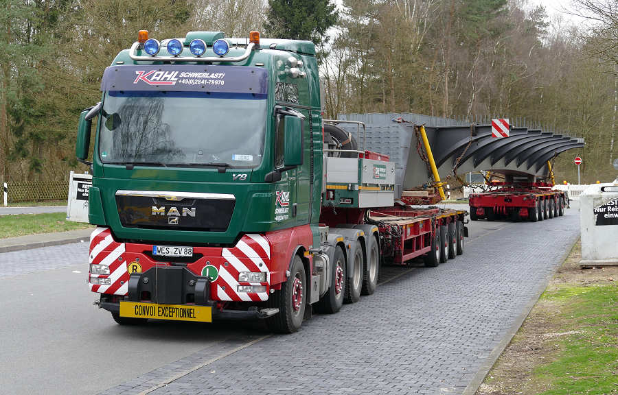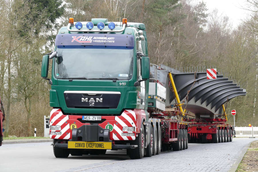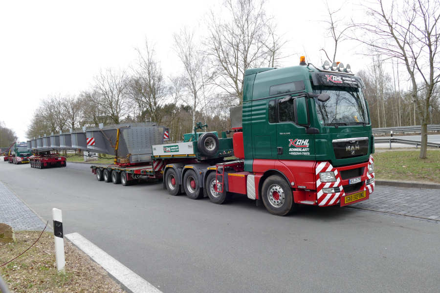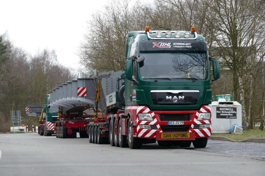 MAN 41.540 und MAN 41.680 mit 75 t Stahlbrückenbinder Transporten
