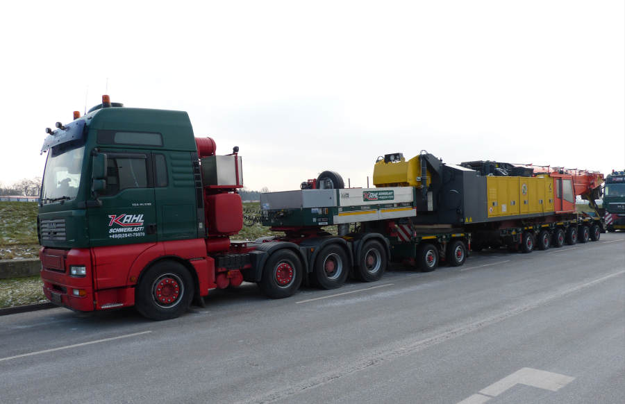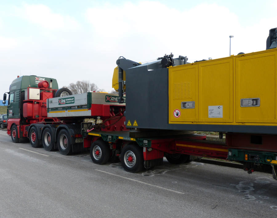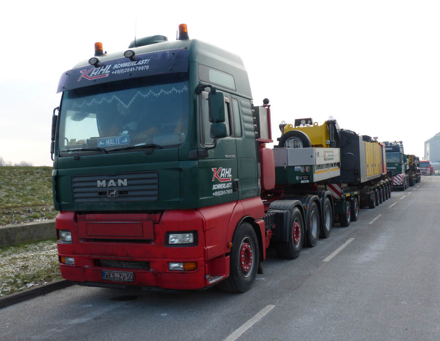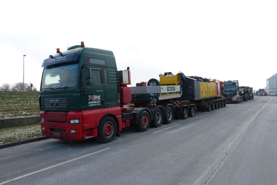 Die erste Schwerlastkombination hatte den Oberwagen geladen und bestand aus MAN 41.540 TGA