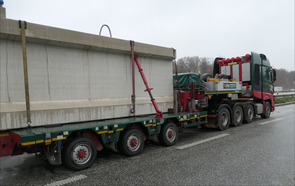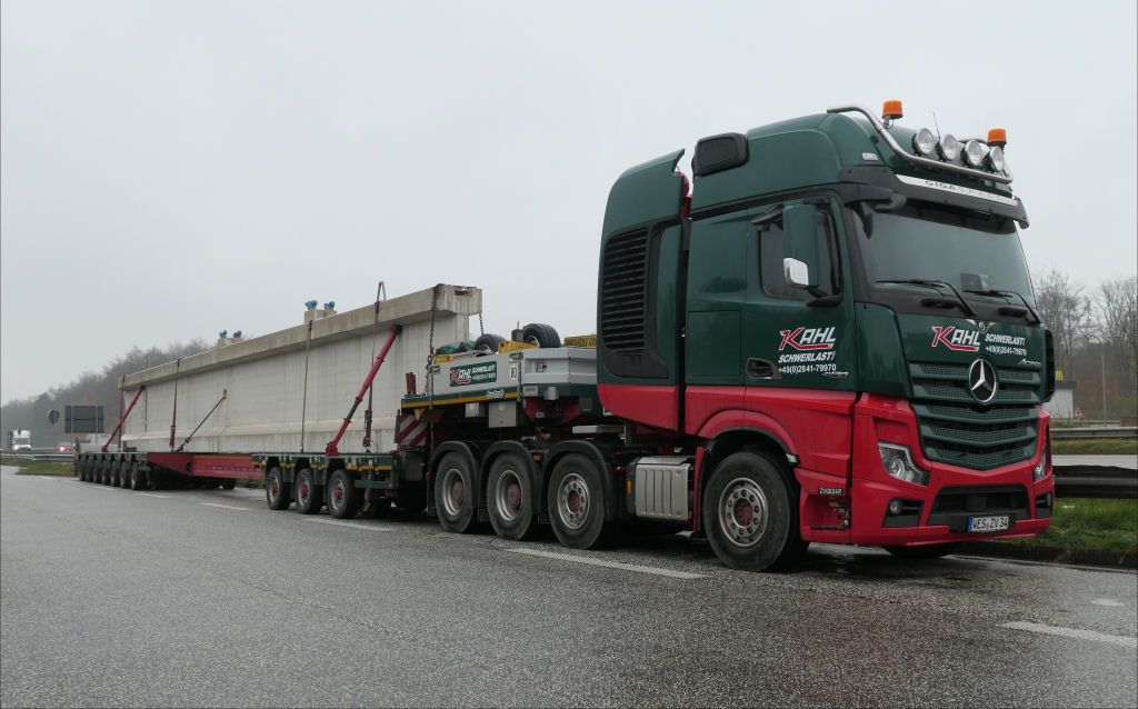 MB 4163 Actros SLT mit Nooteboom 3-7 Manoovr Tieflader und Betonbinder