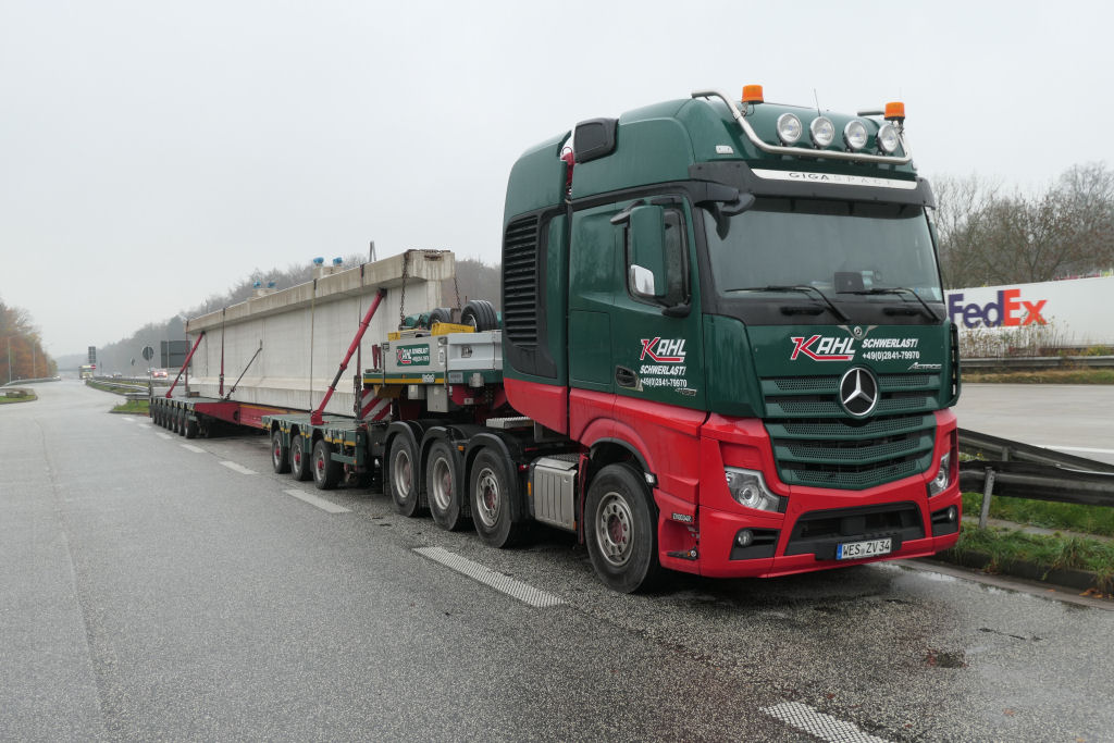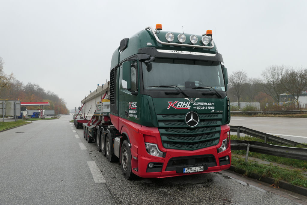 MB 4163 Actros SLT mit Nooteboom 3-7 Manoovr Tieflader und Betonbinder