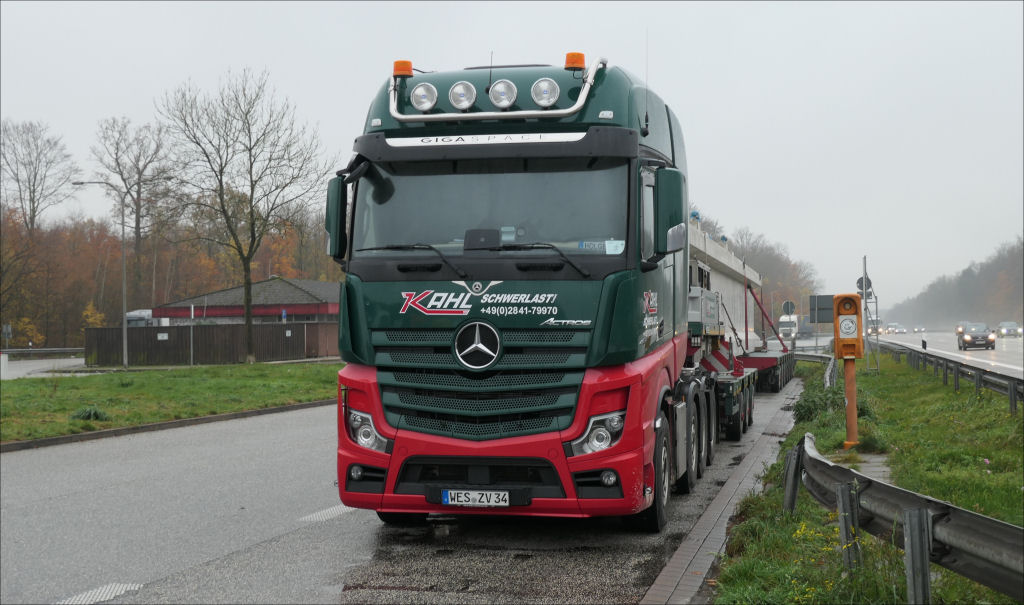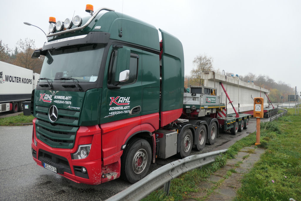 Im November 2021 stand dieser Transport von Kahl Schwerlast auf dem Rasthof Buddikate an der A 1