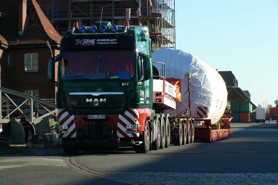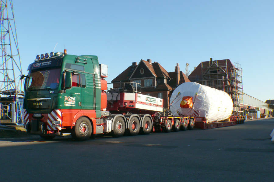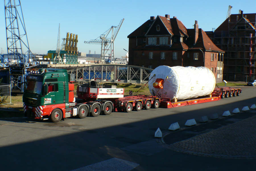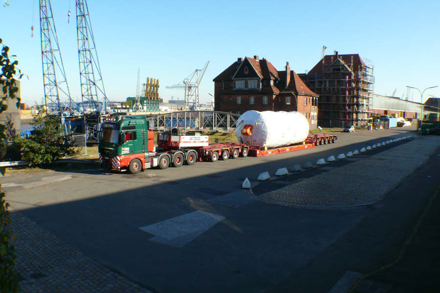 Die Trockner kamen von einem Hersteller in Kassel und diese Trommel hatte ein Gewicht von 68 t.