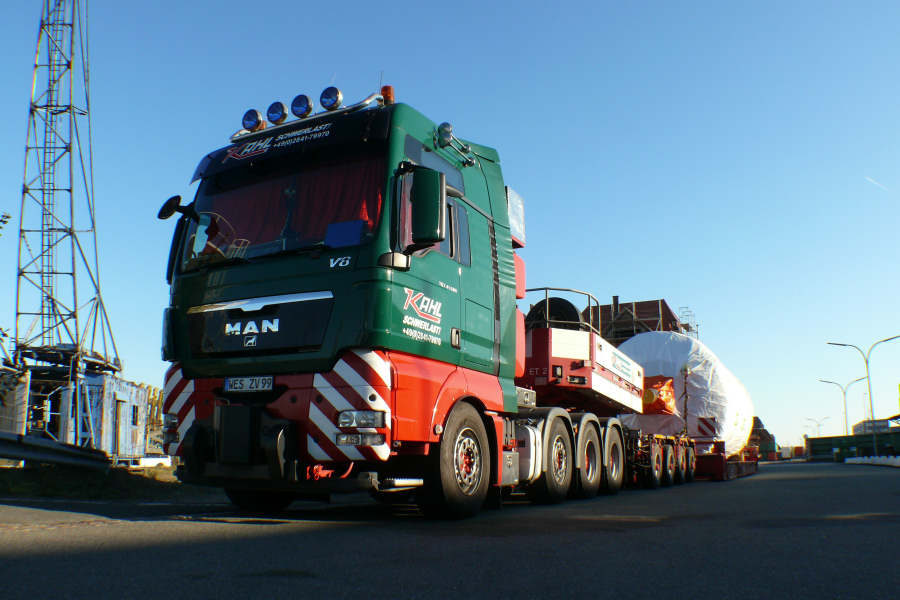 Die Transportkombination bestand aus MAN 41.680 und Goldhofer 4/5 THP Achslinen Sattelkombination