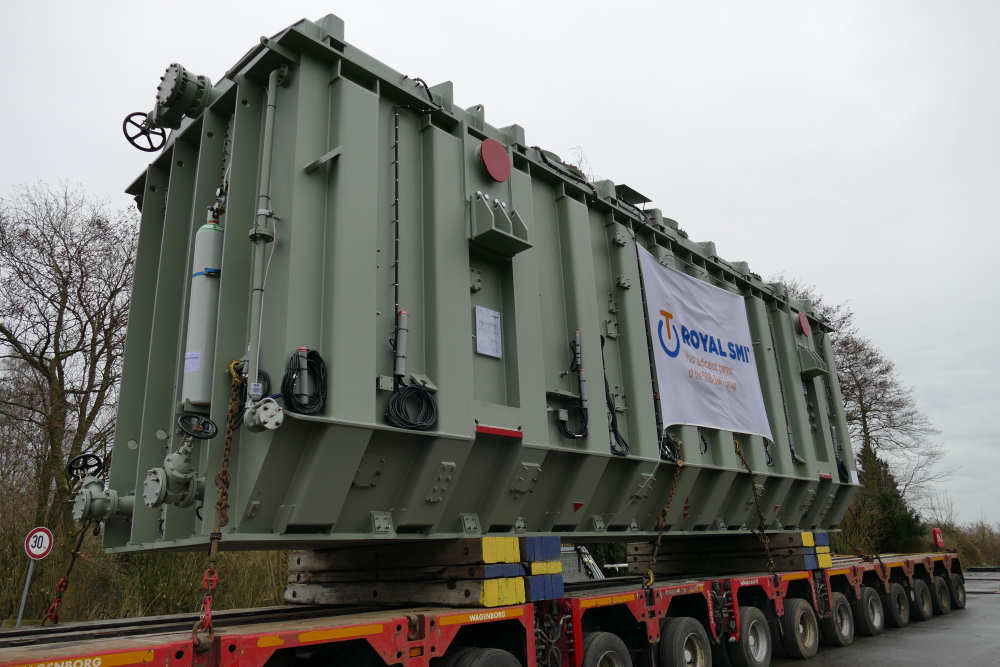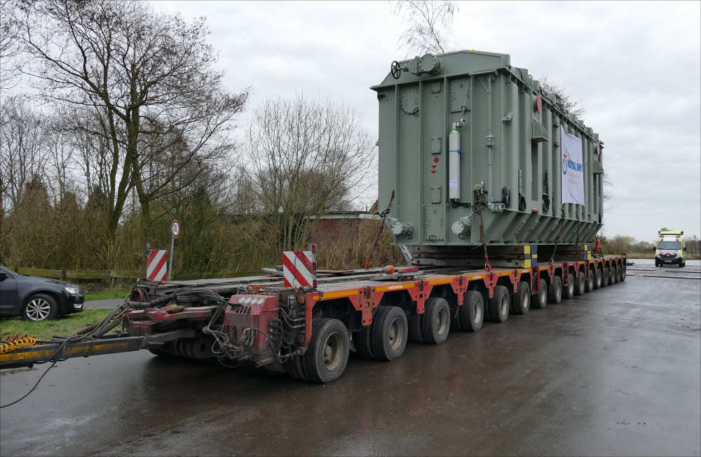 Transport eines 272 t schweren Trafos durch Mammoet und Wagenborg