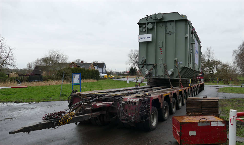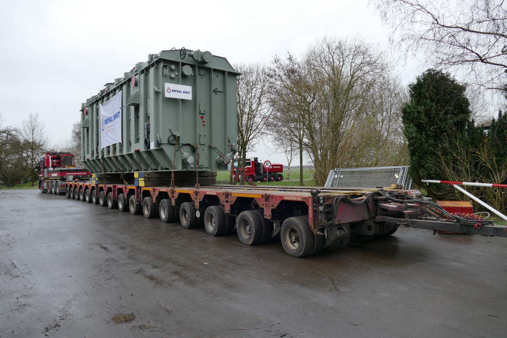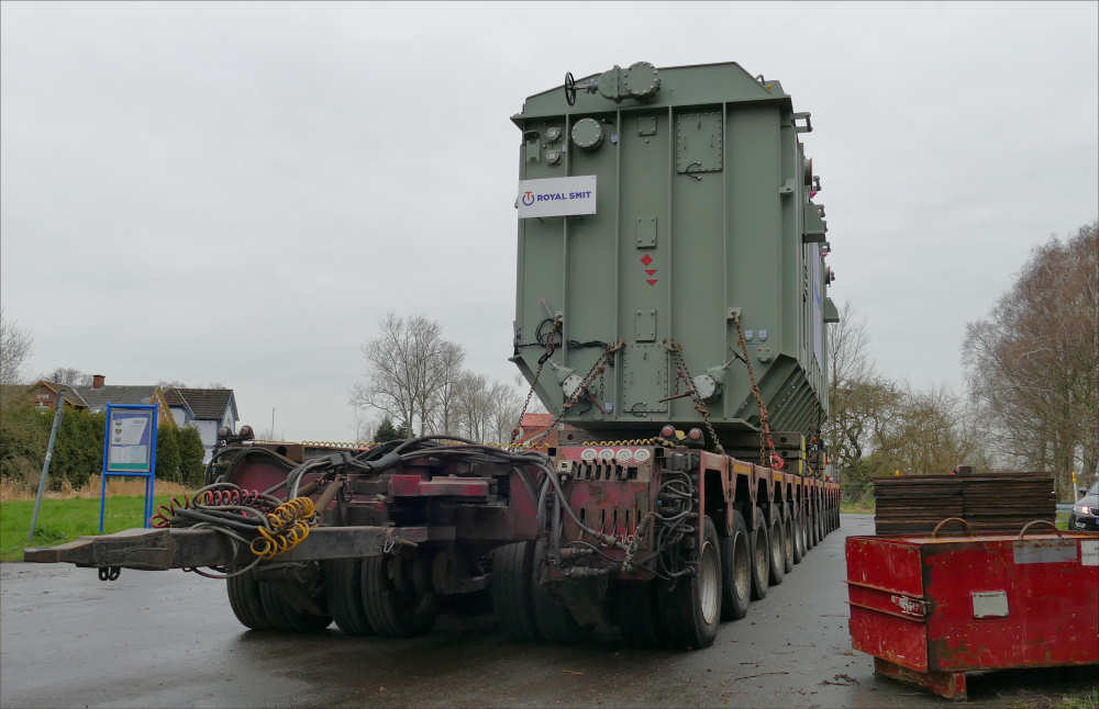 Transport eines 272 t schweren Trafos durch Mammoet und Wagenborg