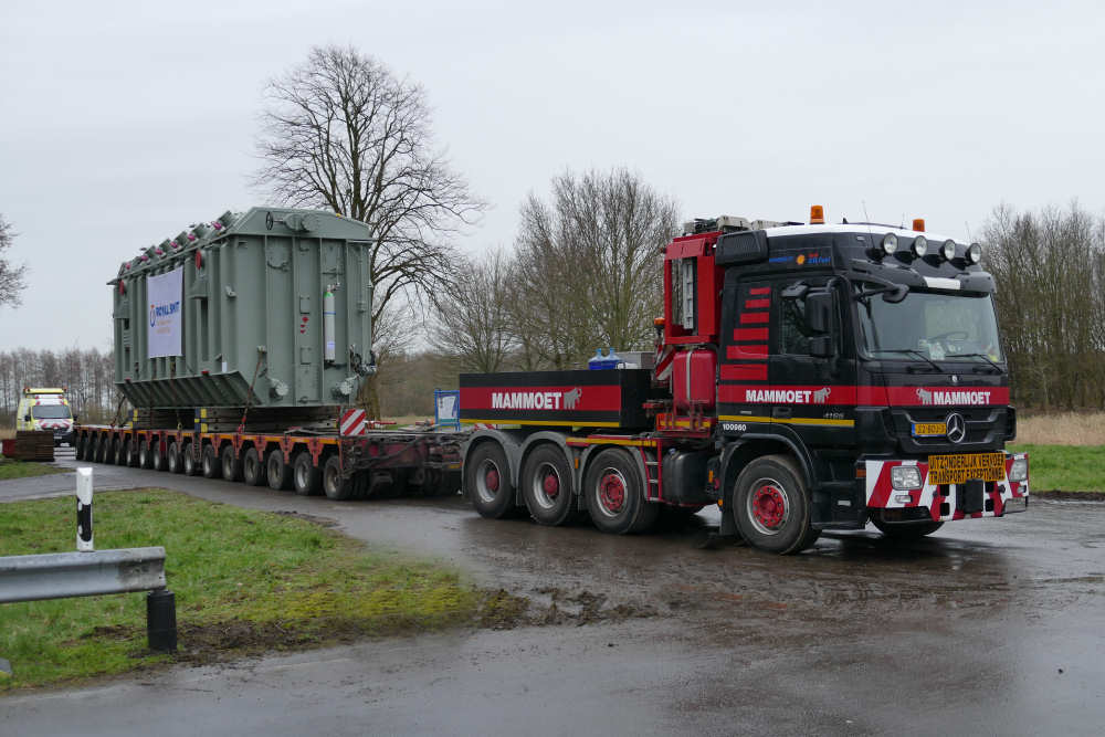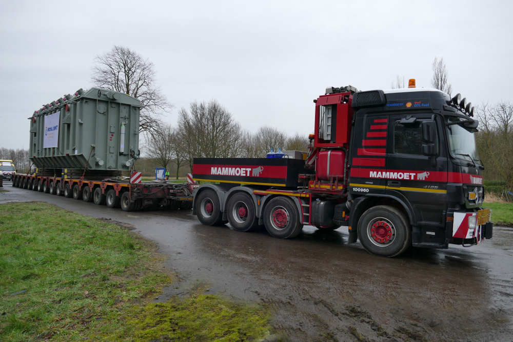 Transport eines 272 t schweren Trafos durch Mammoet und Wagenborg
