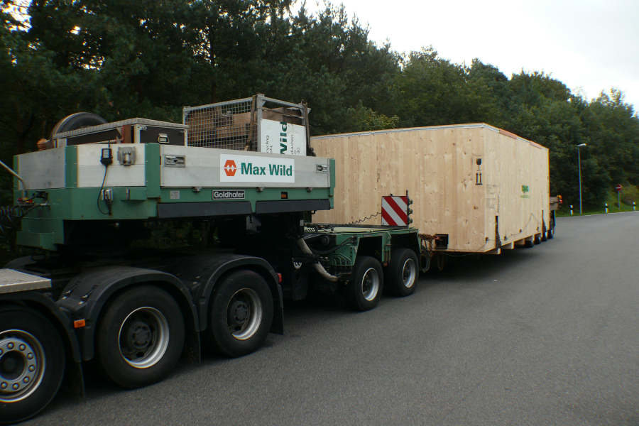 Transport einer 63 t Überseekiste für den Export