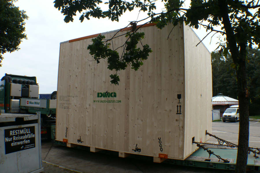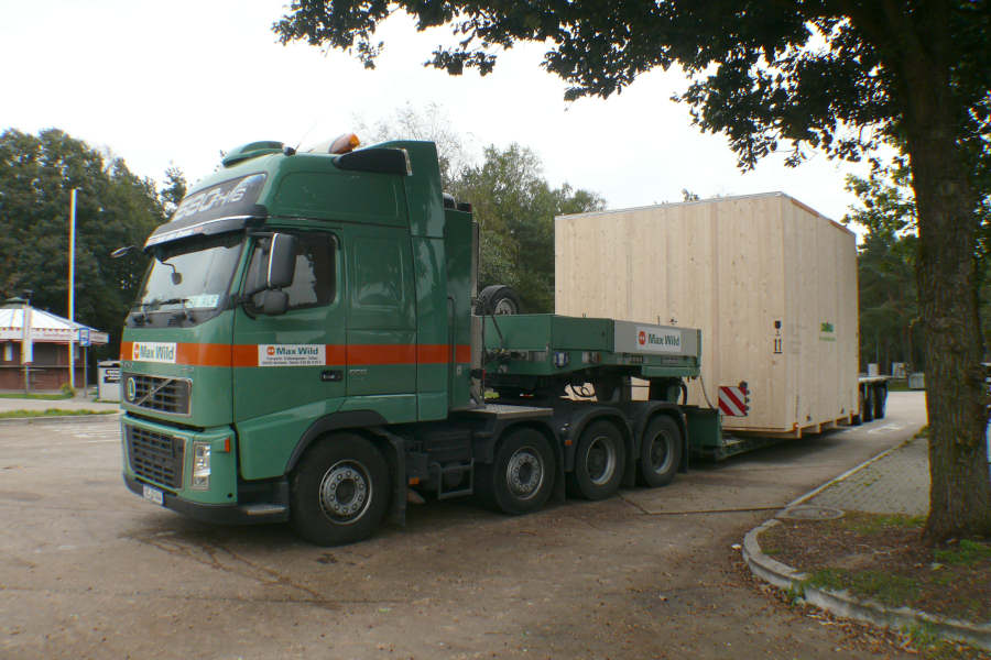 Transport einer 32 t Maschinenkiste für den Export