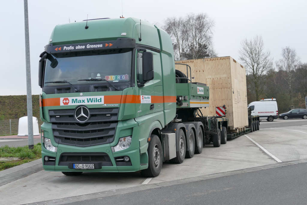 Die Schwerlastkombination bestand aus MB 4163 Actros SLT und Goldhofer THP 2/4 Sattelroller mit Tiefbett.