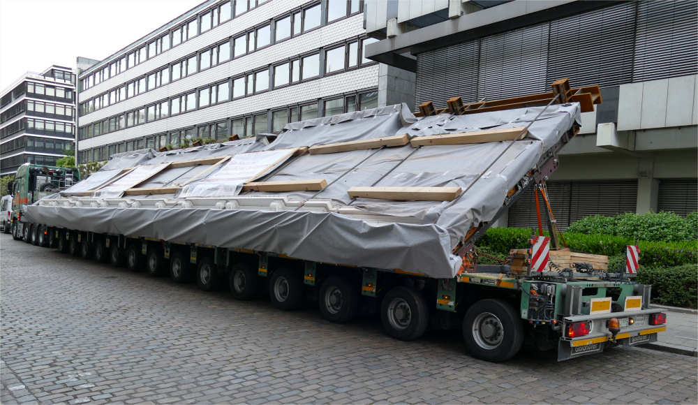 Das Wandteil, auf diesem Transporter hatte ein Gewicht von 55 t.