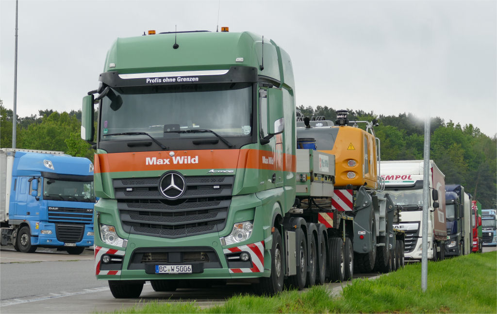 Im Mai 2021 konnte ich diesen Transport von Max Wild auf dem Rastplatz Seevetal an der A 7 fotografieren.