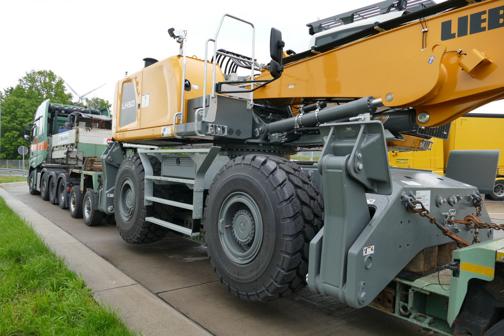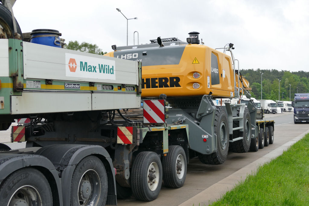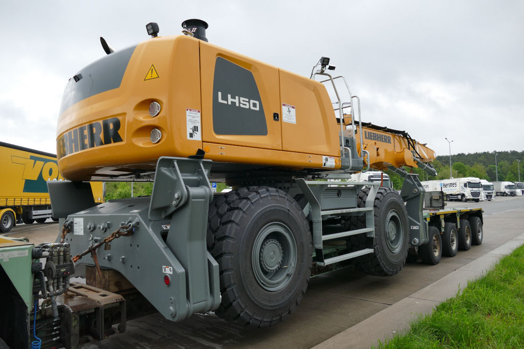 Transportiert wurde ein Liebherr LH 50 Umschlagbagger für den
