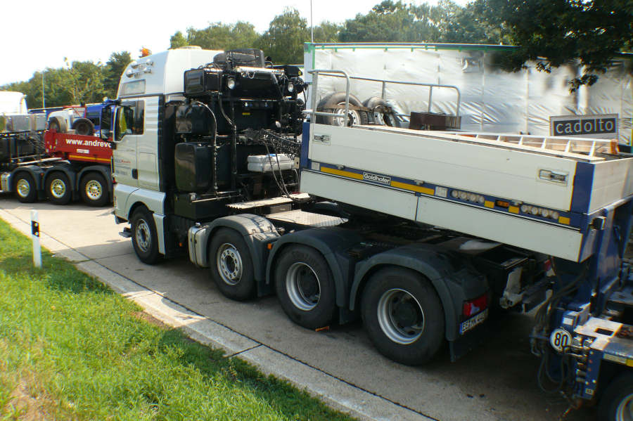 Als Zugmaschinen waren MAN 41.680 TGX vor die Goldhofer THP Kombinationen gespannt.