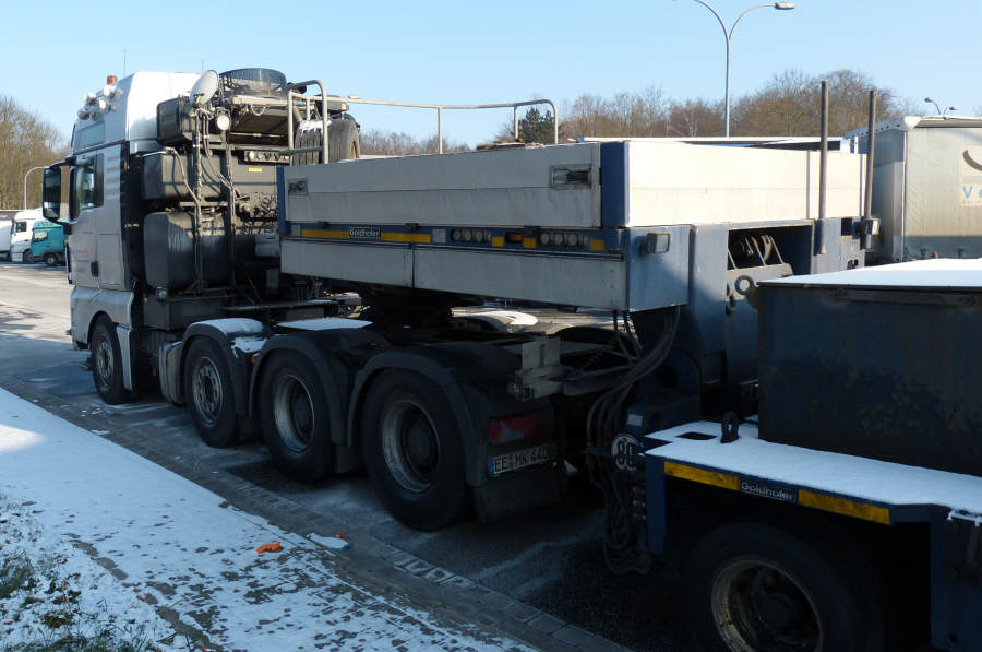 Die Tiefladerkombination bestand aus MAN 41.680 TGX mit Goldhofer THP/UT 3/6 Sattelroller, mit