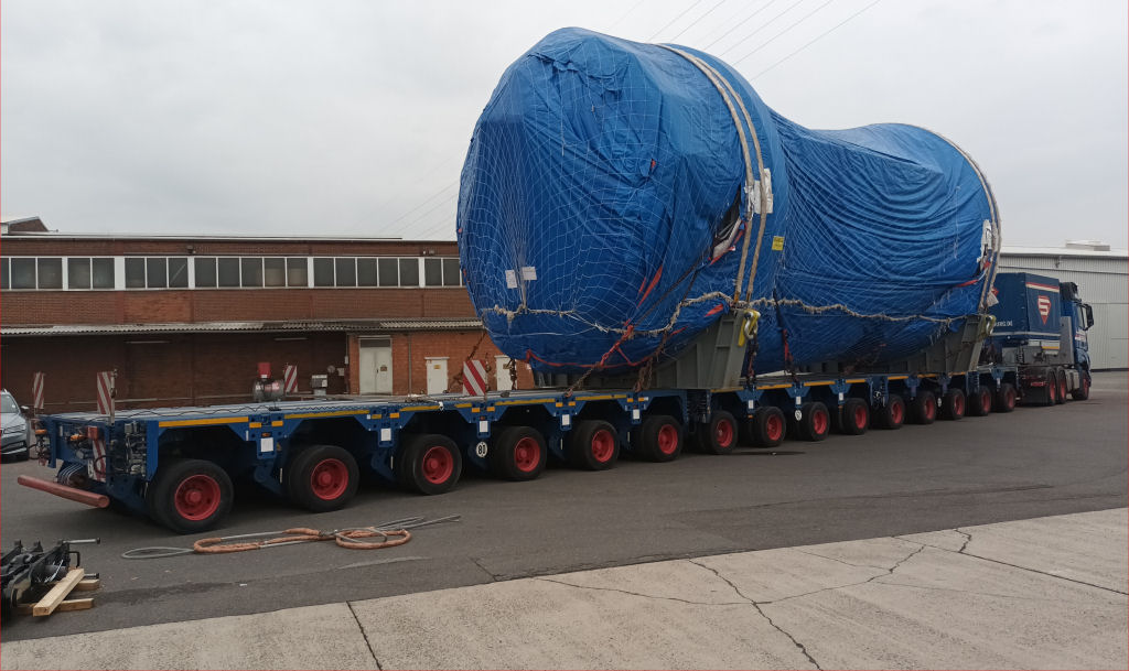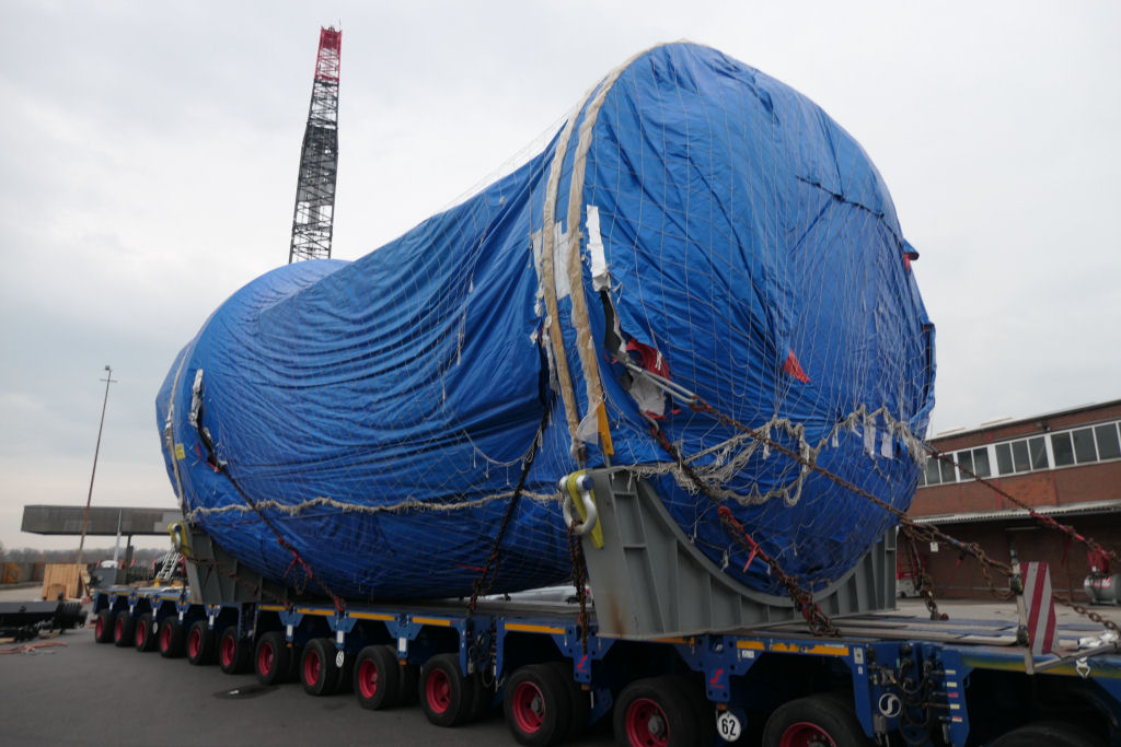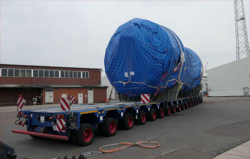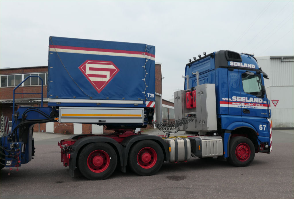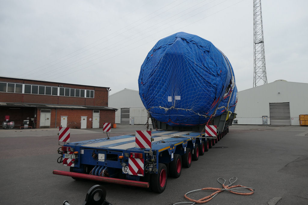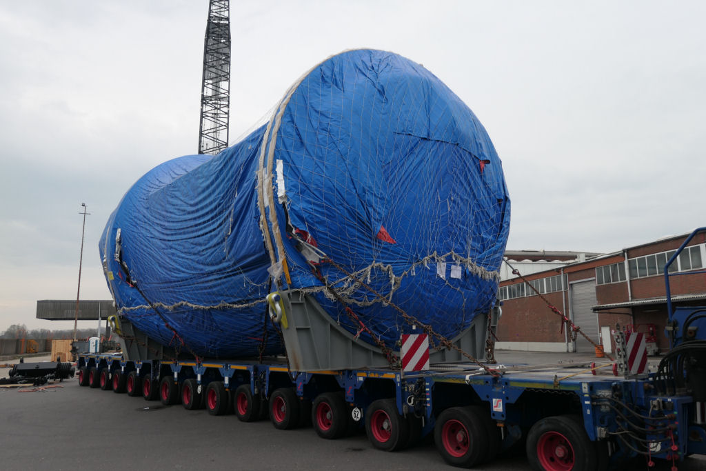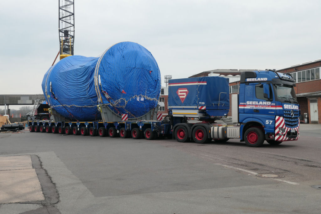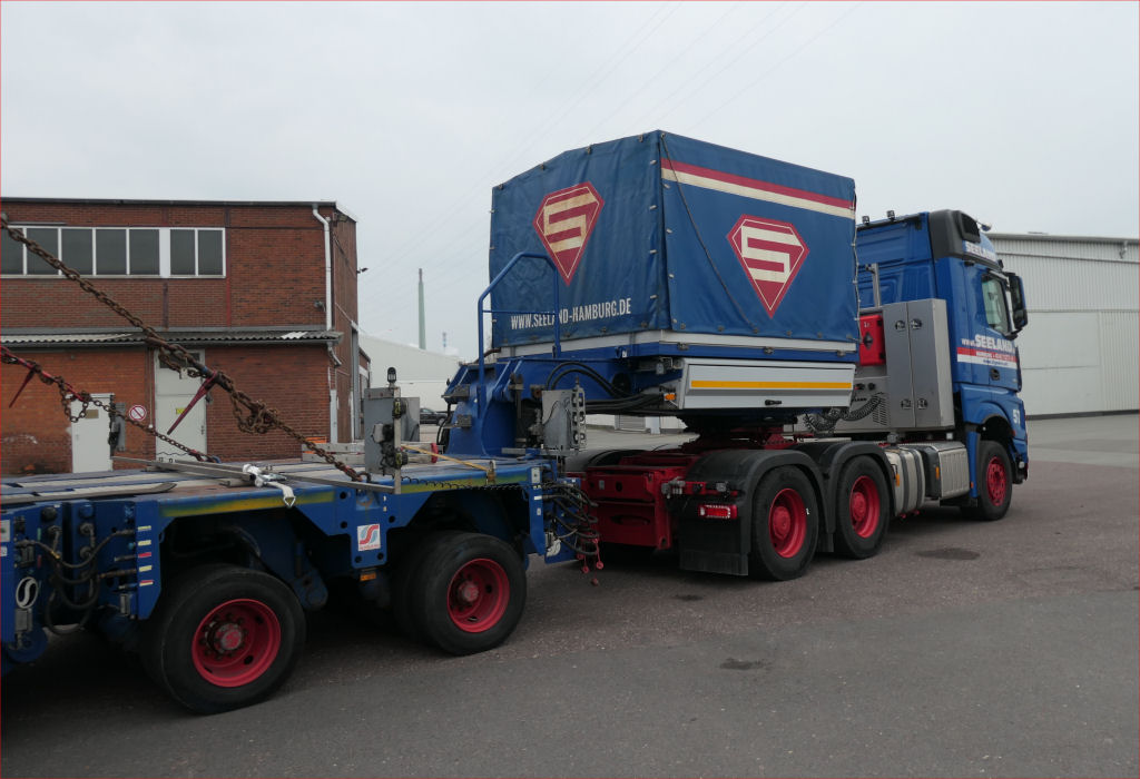 MB 3358 Arocs mit Scheuerle Intercombi 15 Achs Sattelroller, Transport eines Anodenofens