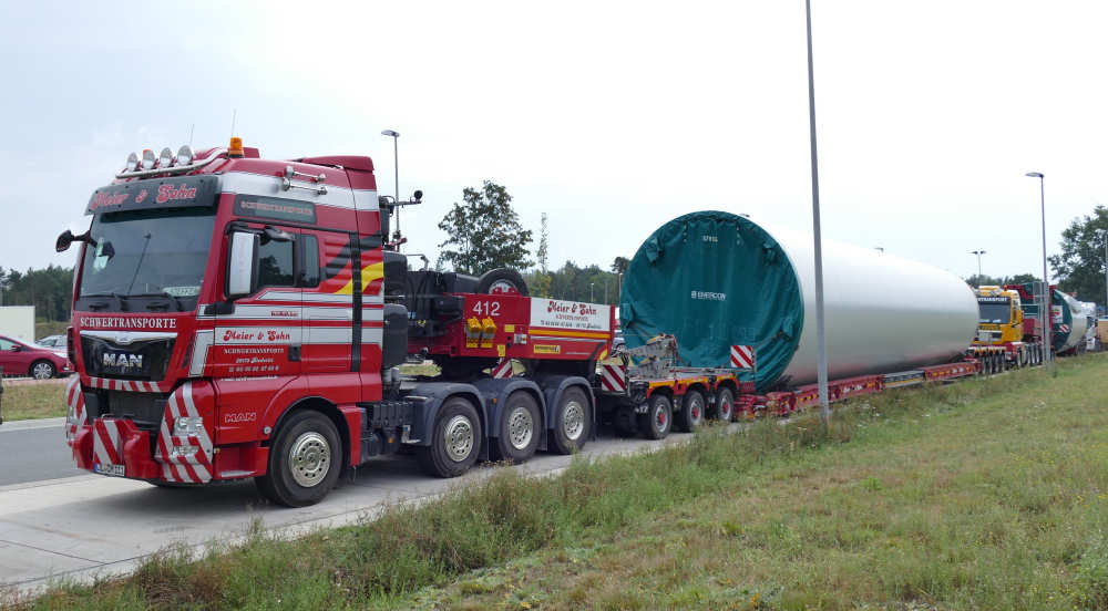 Hierfür setzte Meier&Sohn eine Kombination aus MAN 41.640 TGX 8x4 mit Faymonville Combimax 3/5 Sattelroller
