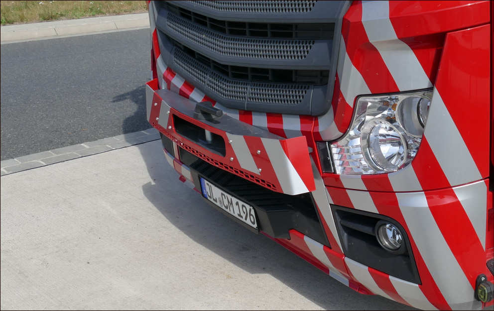 Die Transportkombination bestand aus MB 2858 Actros MP 4 und Faymonville 2-4 Jeepdollytieflader.