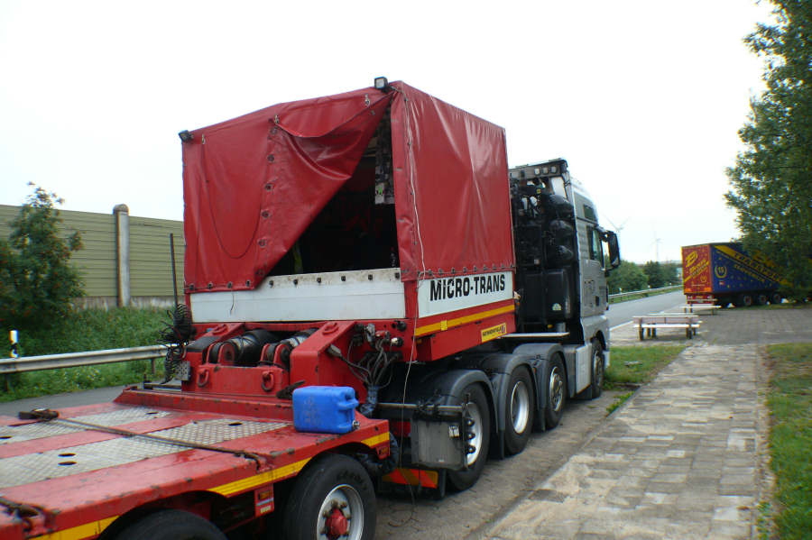 MAN 41.680 TGX mit Faymonville Tieflader und Dampfkesseltransport