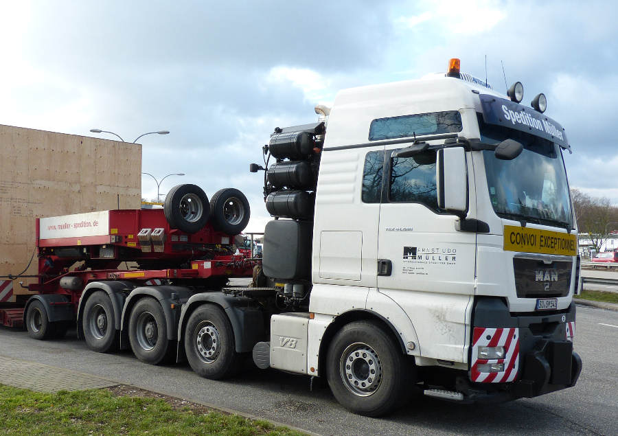 MAN 41.680 mit Jeepdollytieflader und Maschinenkiste