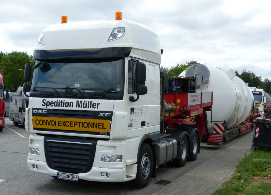 Ende Mai 2014 waren diese beiden Transporte der Spedition Ernst Udo Müller auf dem Rasthof Buddikate Ost zu sehen.