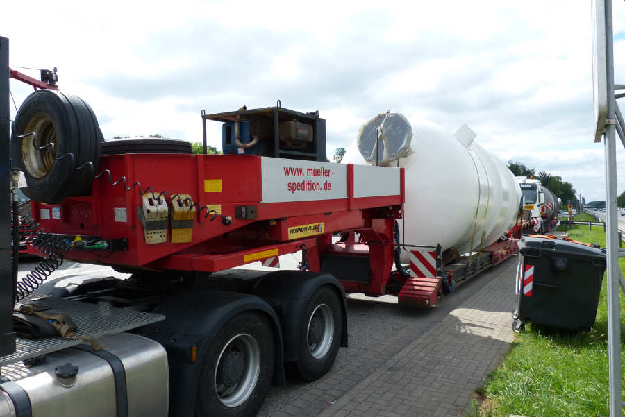 Der zweite Transport aus MAN 41.540 TGX 8x4 mit Faymonville zweiachs Kesselbett.
