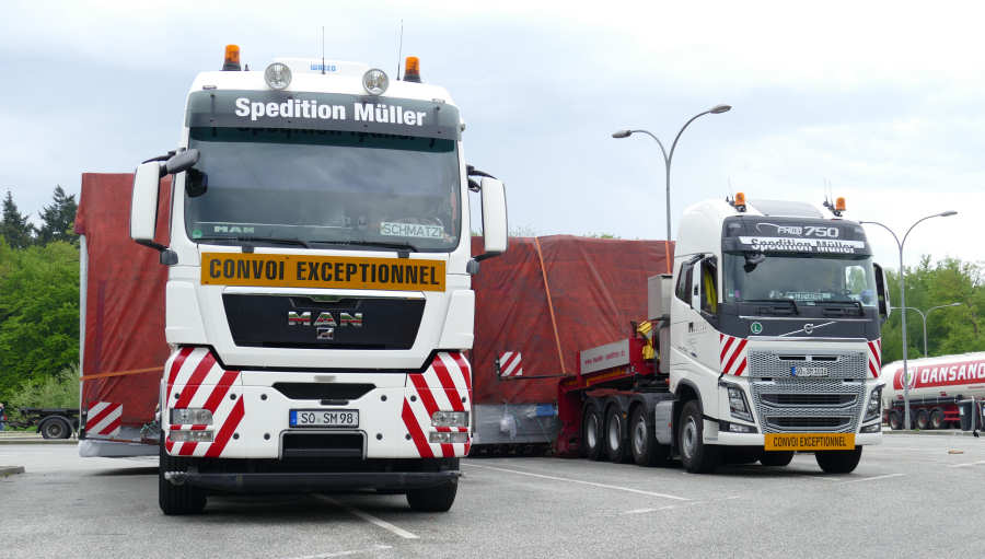 Mitte Mai 2015 waren diese beiden Transporte der Spedition Müller auf dem Weg in den Norden. Es wurden zwei größere