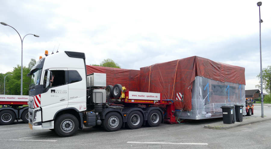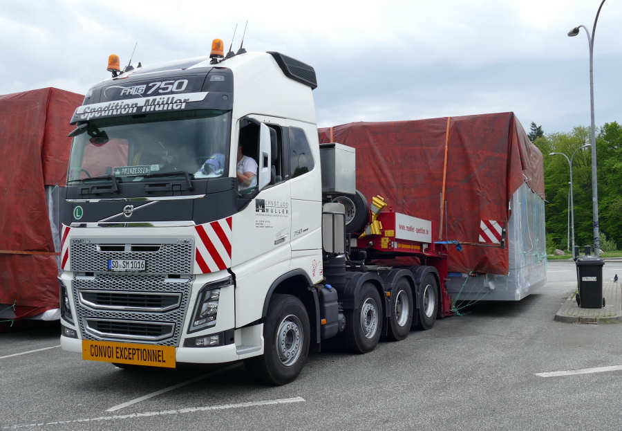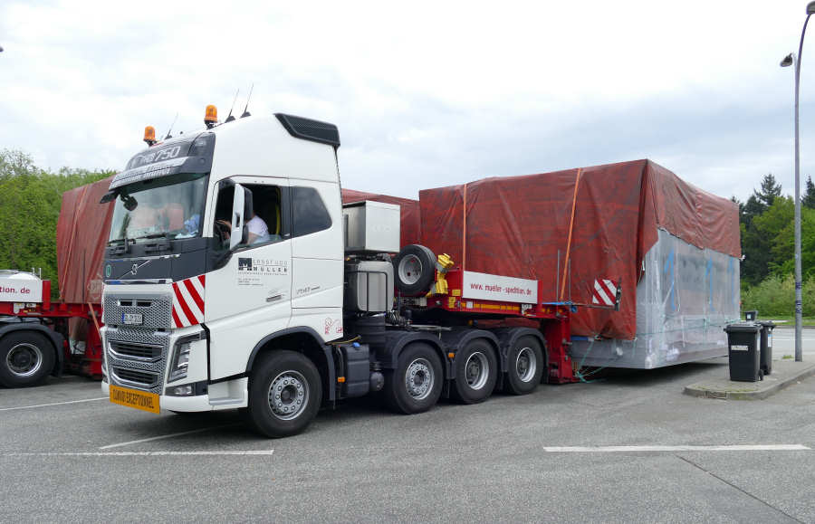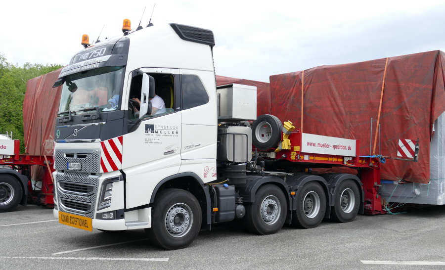 Volvo FH 16 750 Euro 6 und MAN 41.540 TGX Transport von zwei Industrie Anlagenteilen