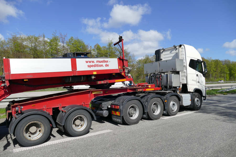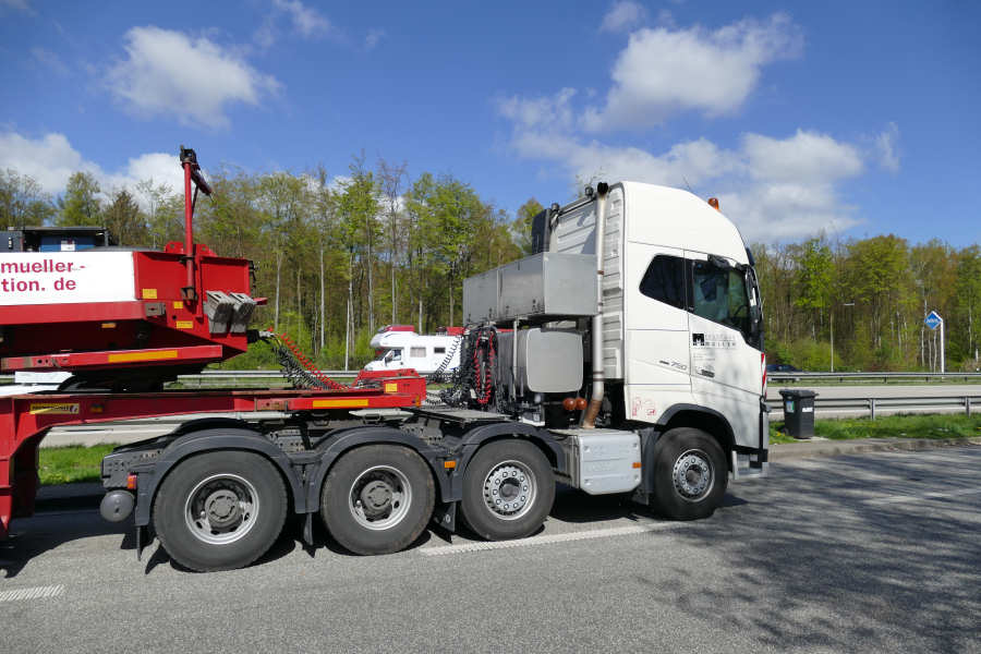 Volvo FH 16 750 Euro 6 und Faymonville Jeepdolly Tiefbettkombination mit Autoklaventransport
