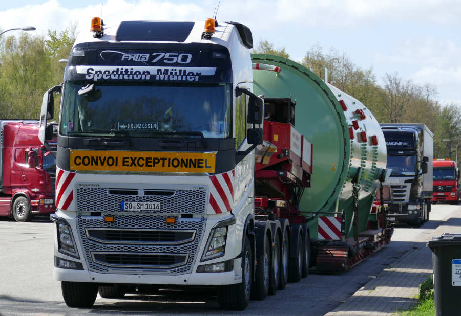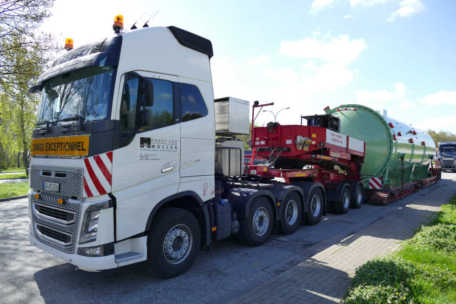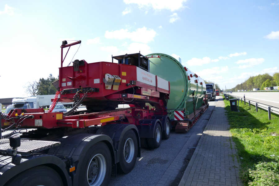 Anfang Mai 2016 stand die Spedition Müller mit einem 50 t schweren Autoklaven, für eine norwegische Rüstungsfirma