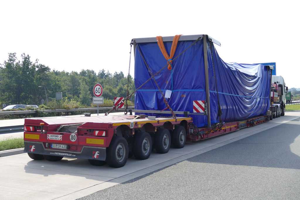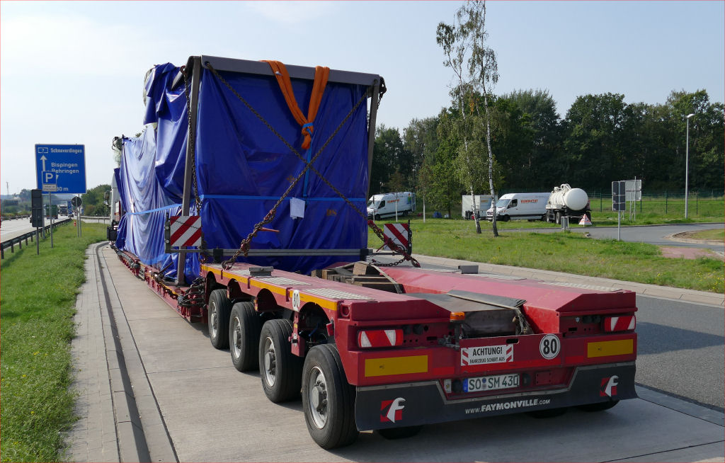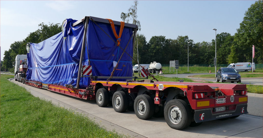 DAF XF 530 8x4 und Faymonville 2/4 Tiefbettkombination mit Papierwickelmaschine