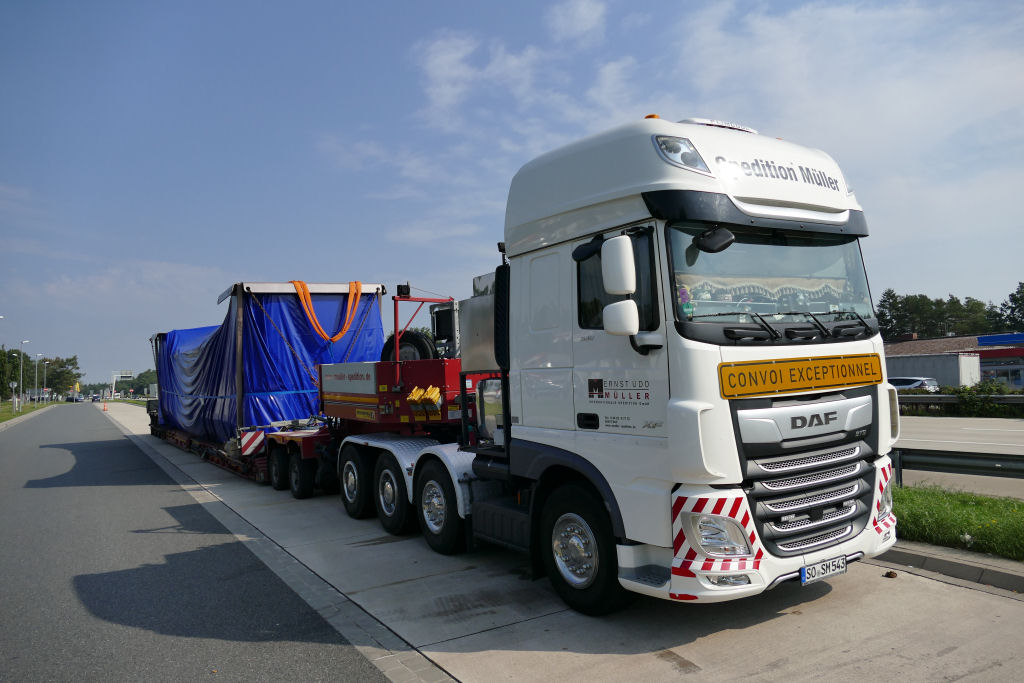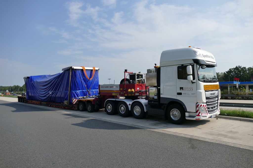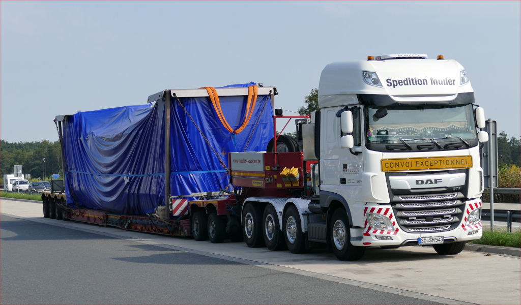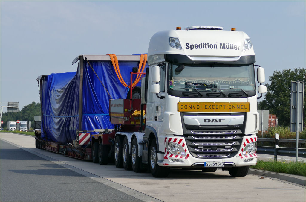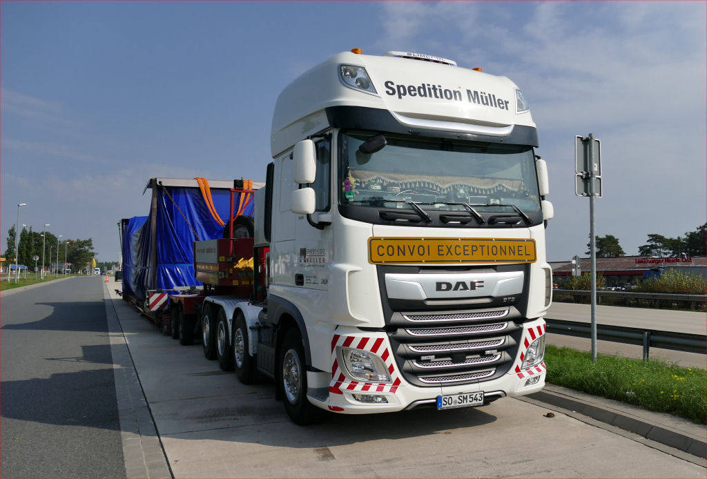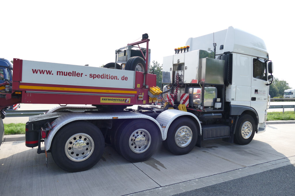 DAF XF 530 8x4 und Faymonville 2/4 Tiefbettkombination mit Papierwickelmaschine