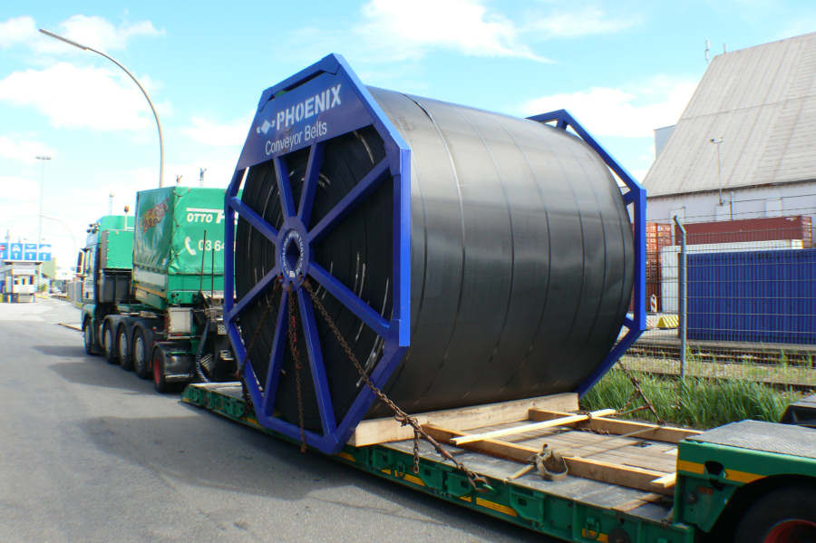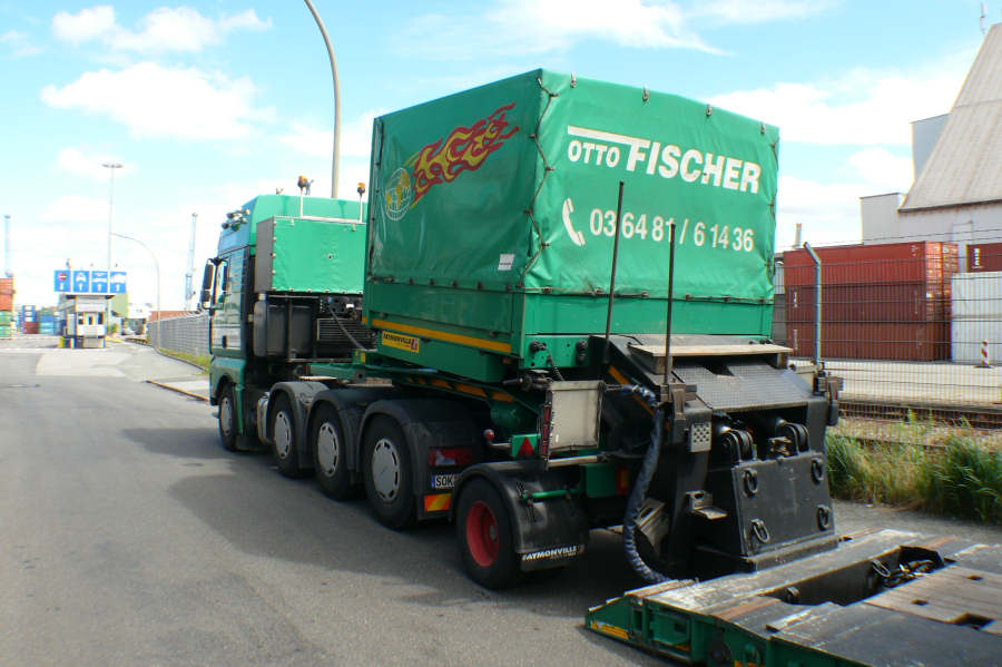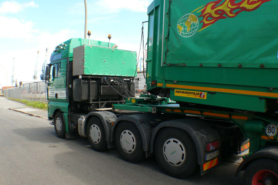MAN 41.530 TGA, Transport einer Rolle Förderbandgummi