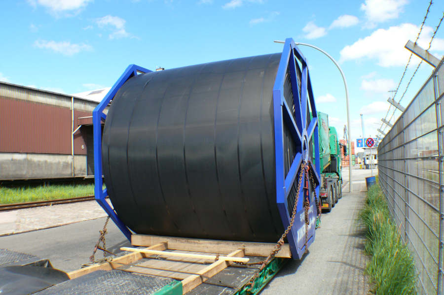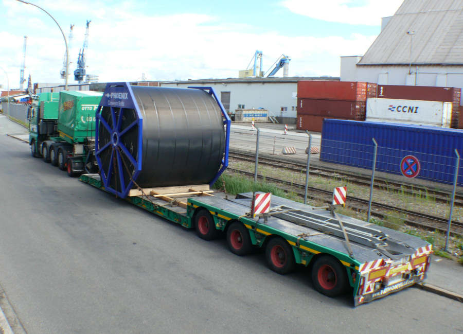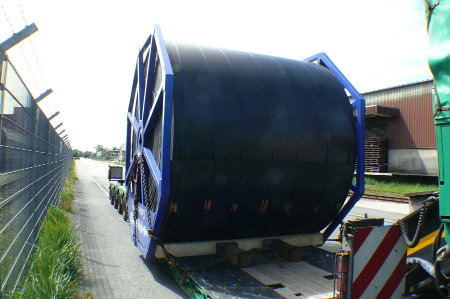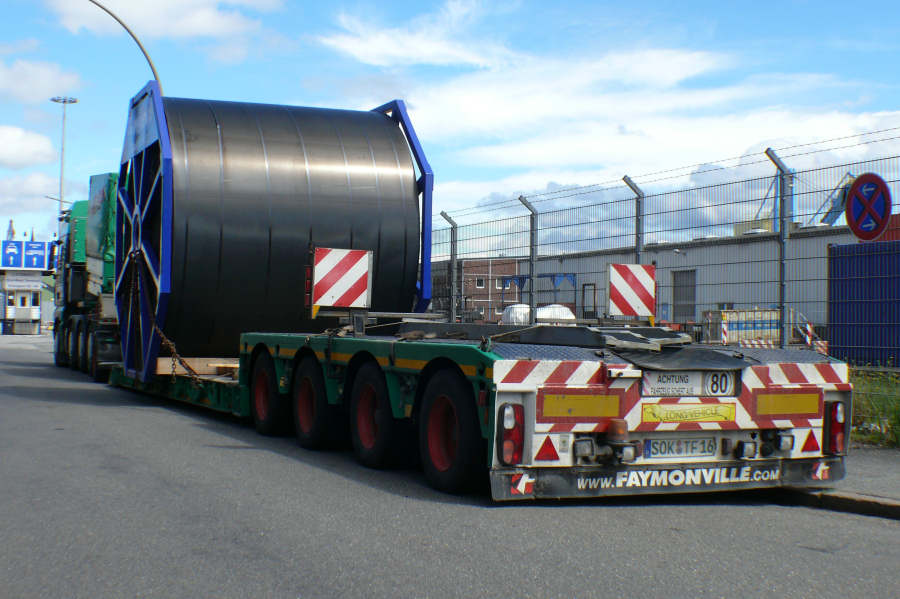 MAN 41.530 TGA, Transport einer Rolle Förderbandgummi