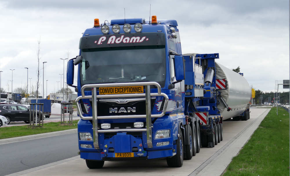 Im April 2017 stand diese Schwerlastkombination von P.Adams auf dem Rasthof Brunautal West an der A 7.