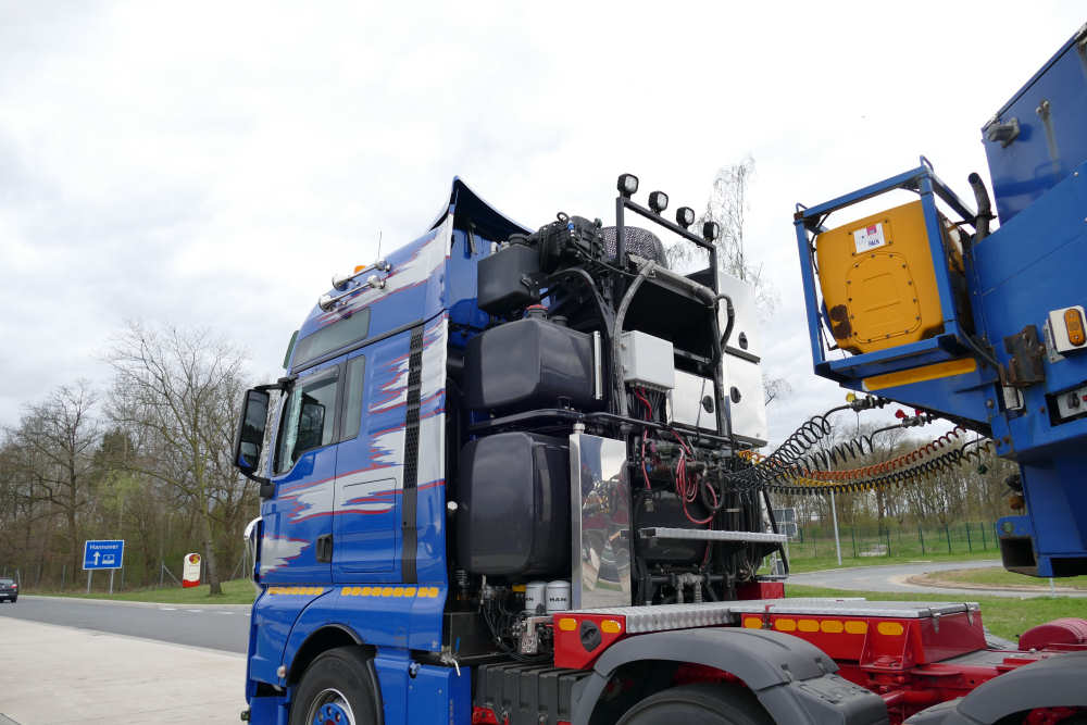 Bei der Zugmaschine handelt es sich um eine MAN 41.640 8x4/4 BBS