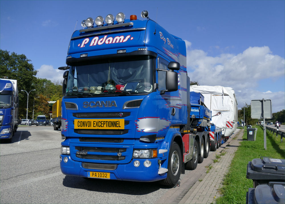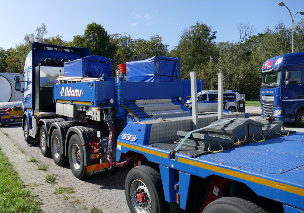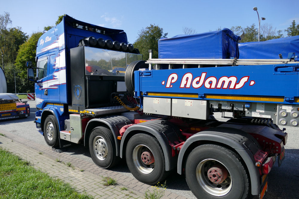 Im September 2019 stand diese Schwerlastkombination von P. Adams auf dem Rasthof Buddikate West, an der A 1 abgestellt.